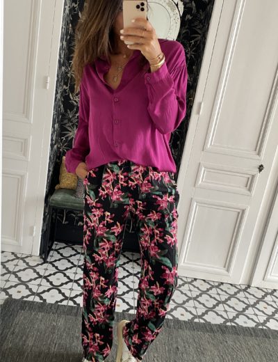 Pantalon Les Petites Fleurs Muguet satin rouge