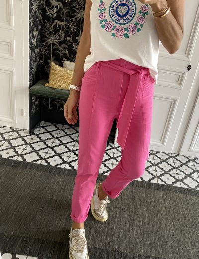 Pantalon couture coton rose