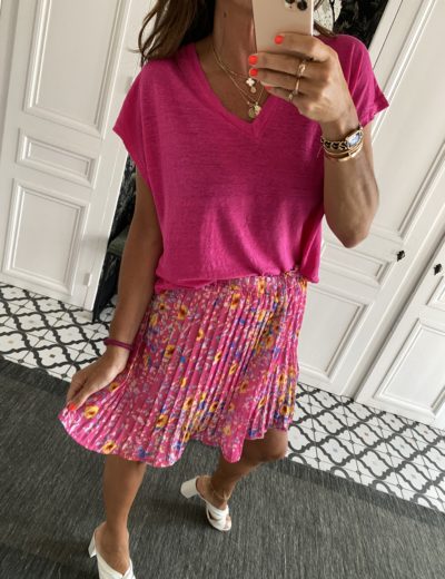 Jupe courte plissée fleurs rose