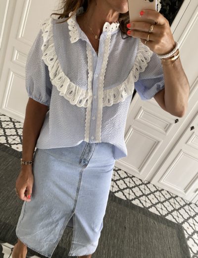 Chemise rayée col broderies anglaises