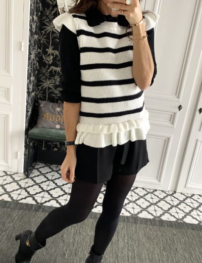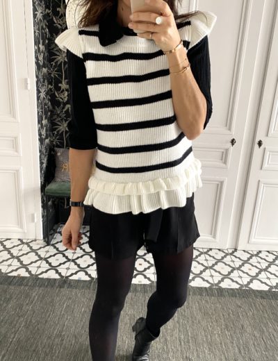 Pull sans manche rayé volant