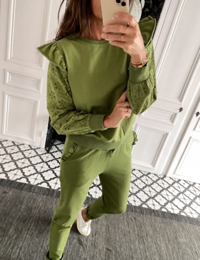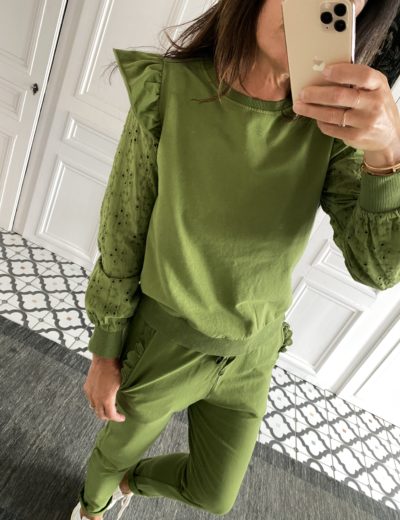 Sweat volant épaule vert