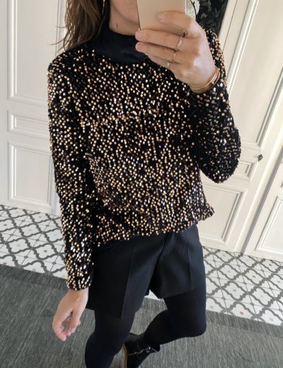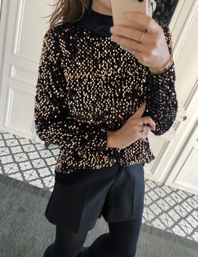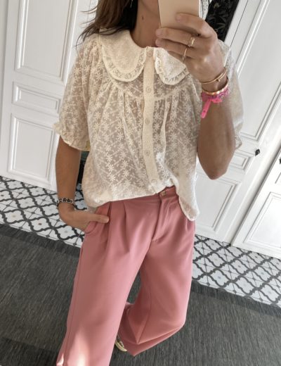 Top Vintage Love Evissa gaze de coton plumetis noir