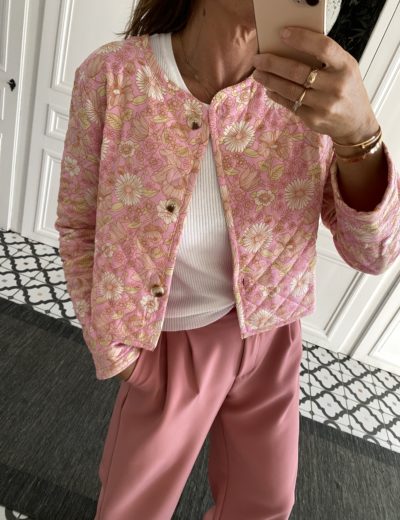 Veste courte fleurie rose manches longues
