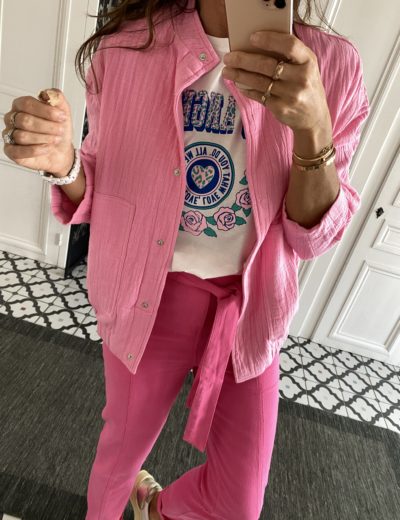 Veste coton forme blouson rose