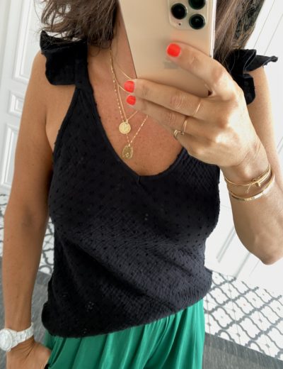 Top Vintage Love Evissa gaze de coton plumetis noir