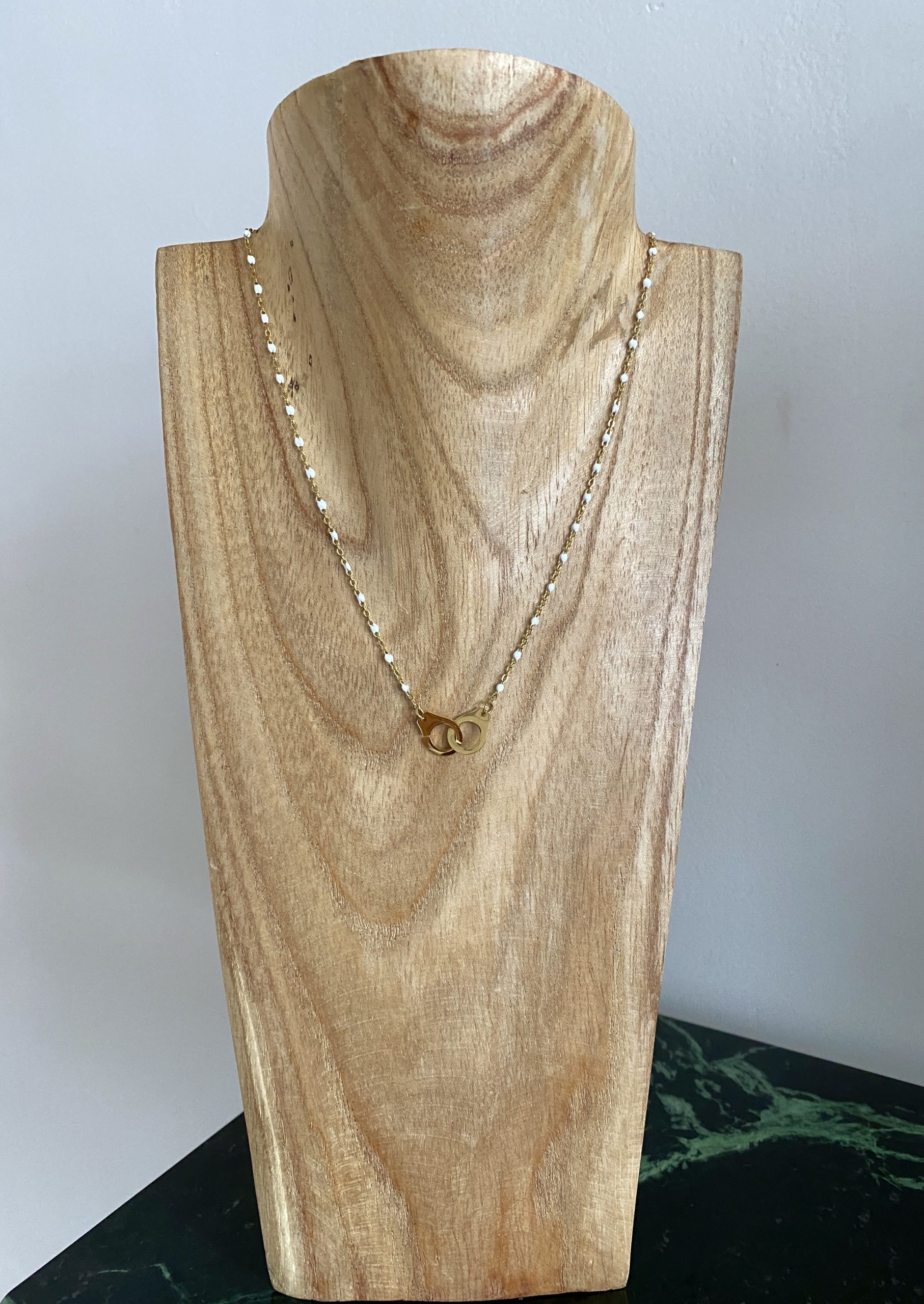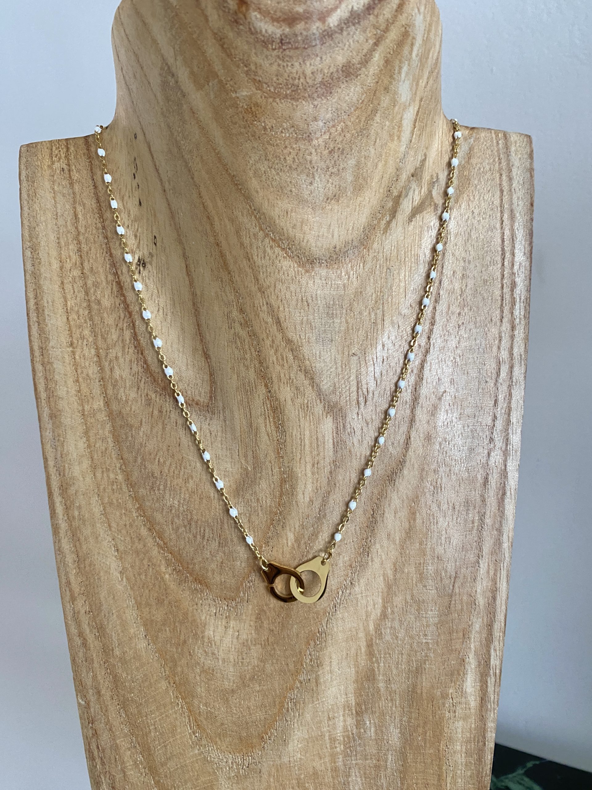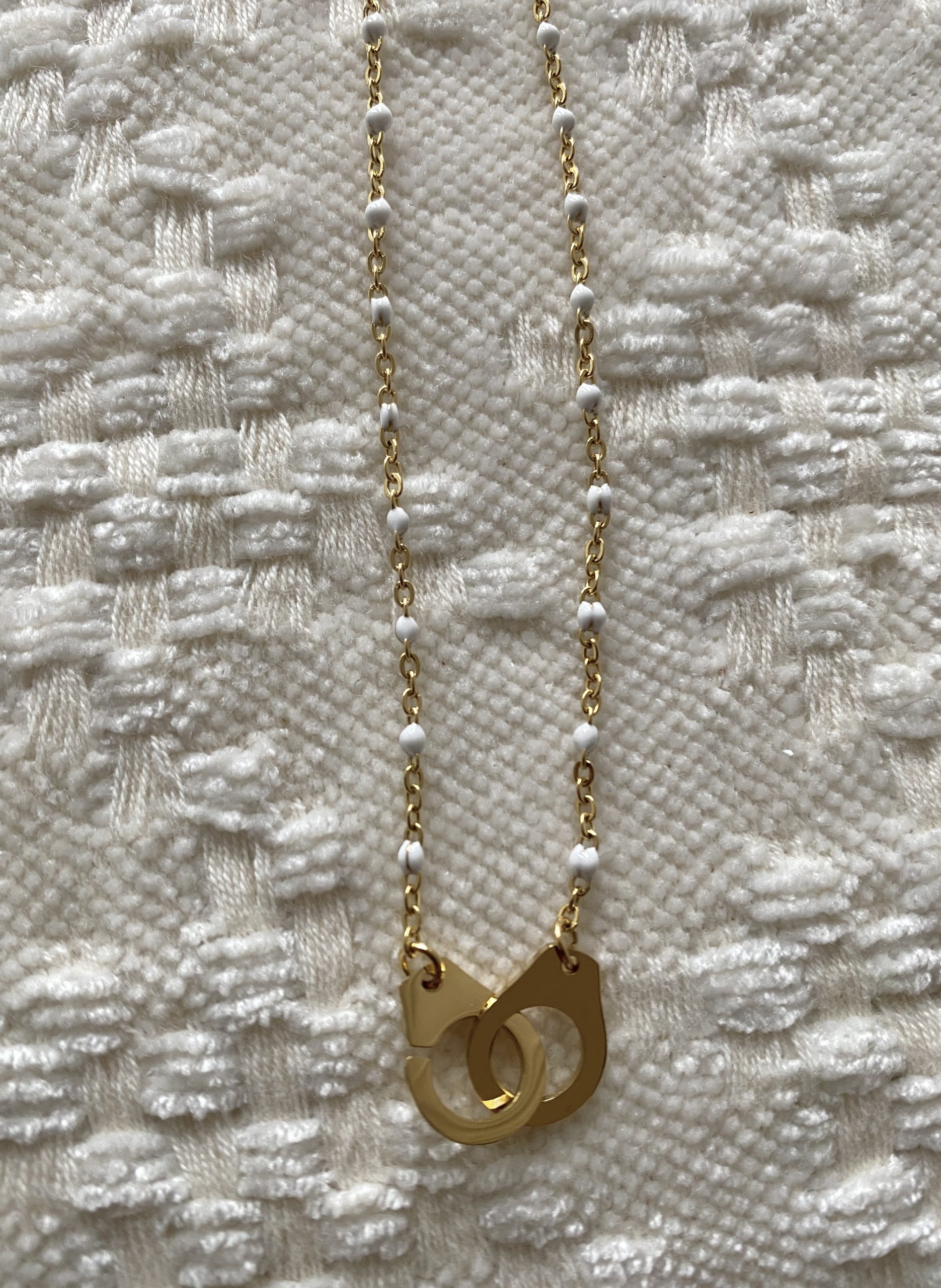 / Collier perles et menottes blanc