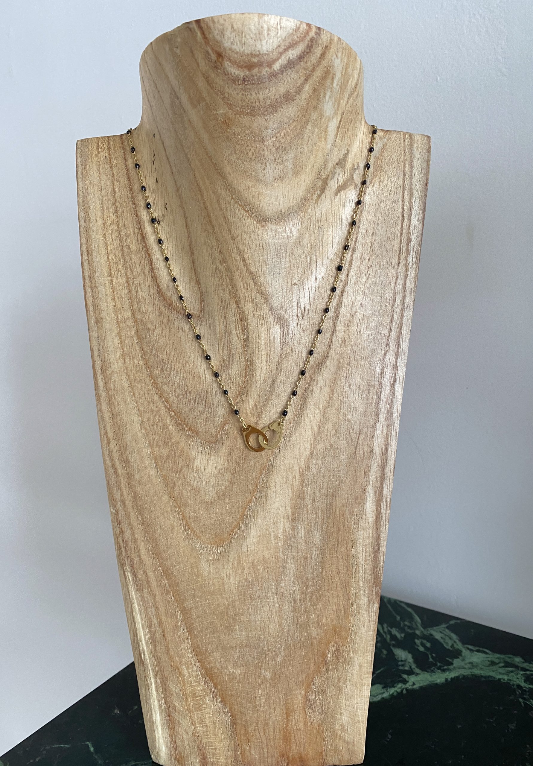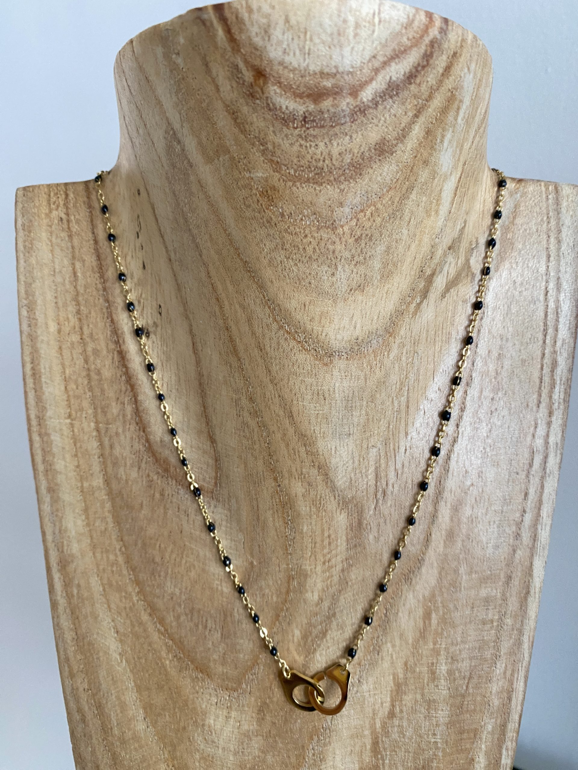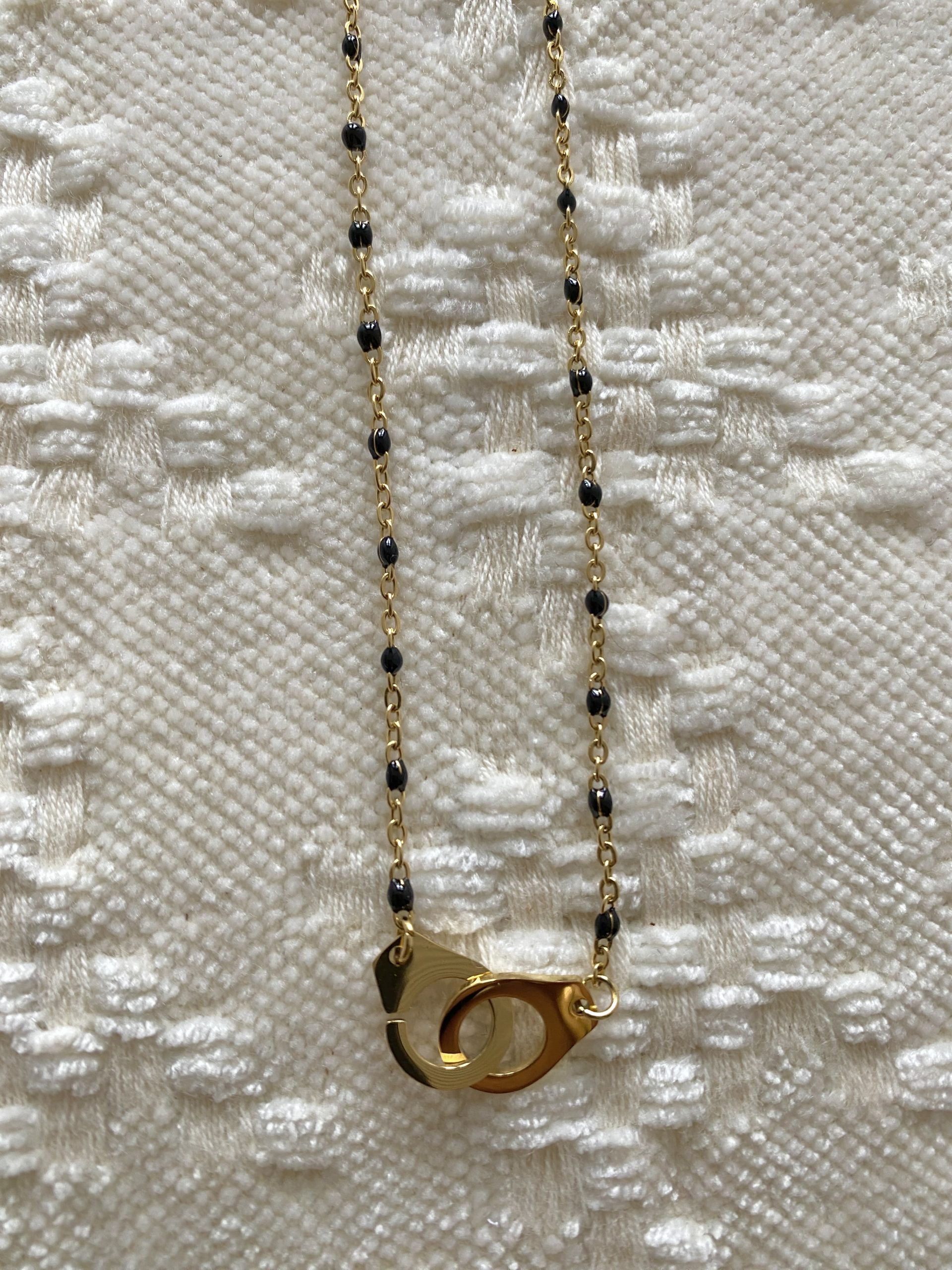 / Collier perles et menottes noir