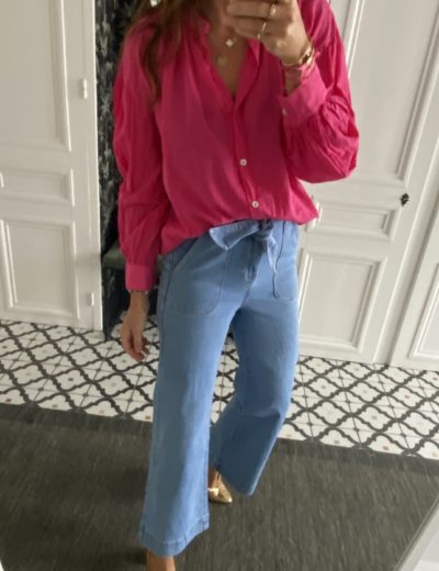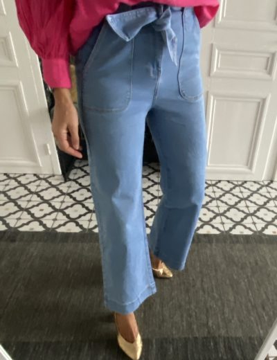 Jeans jambes évasées bleu 7/8 ème ceinture noeud