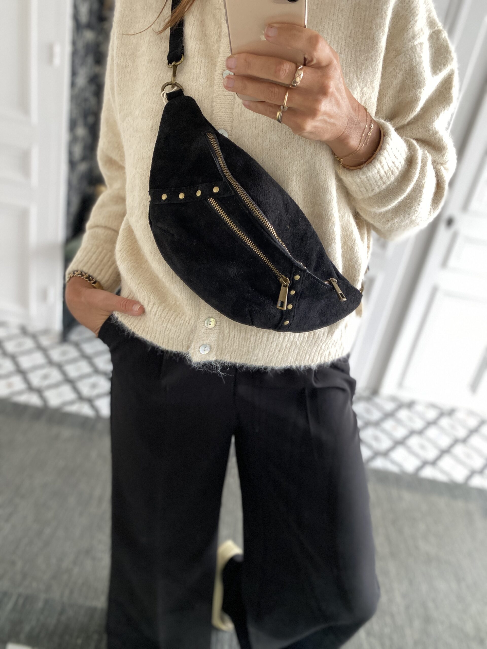 Sac banane daim et clous noir
