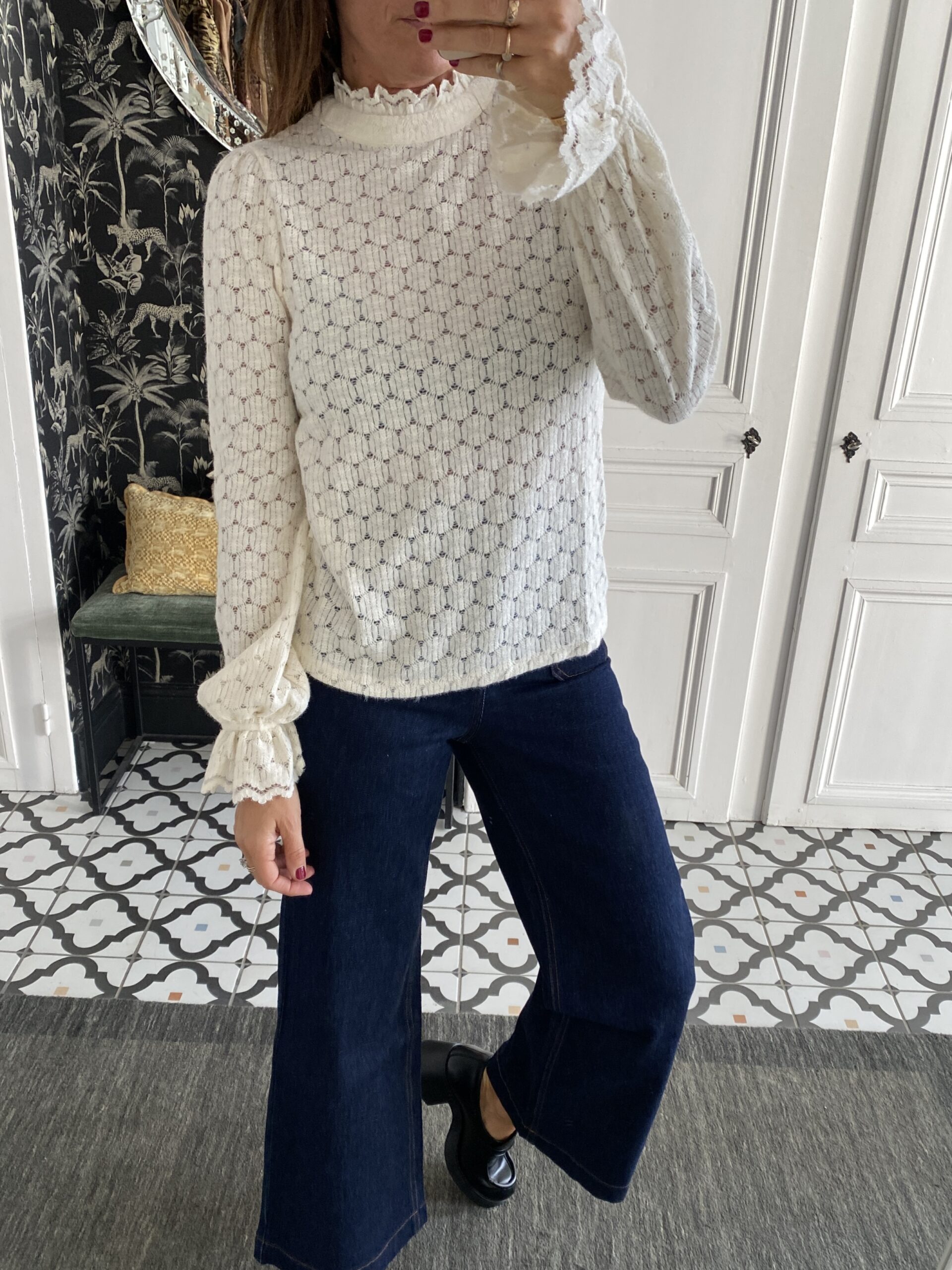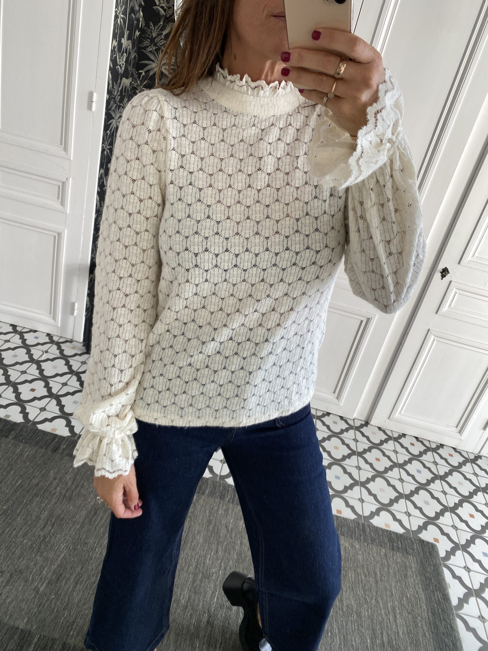 Blouse matière douce et chaude col montant écru