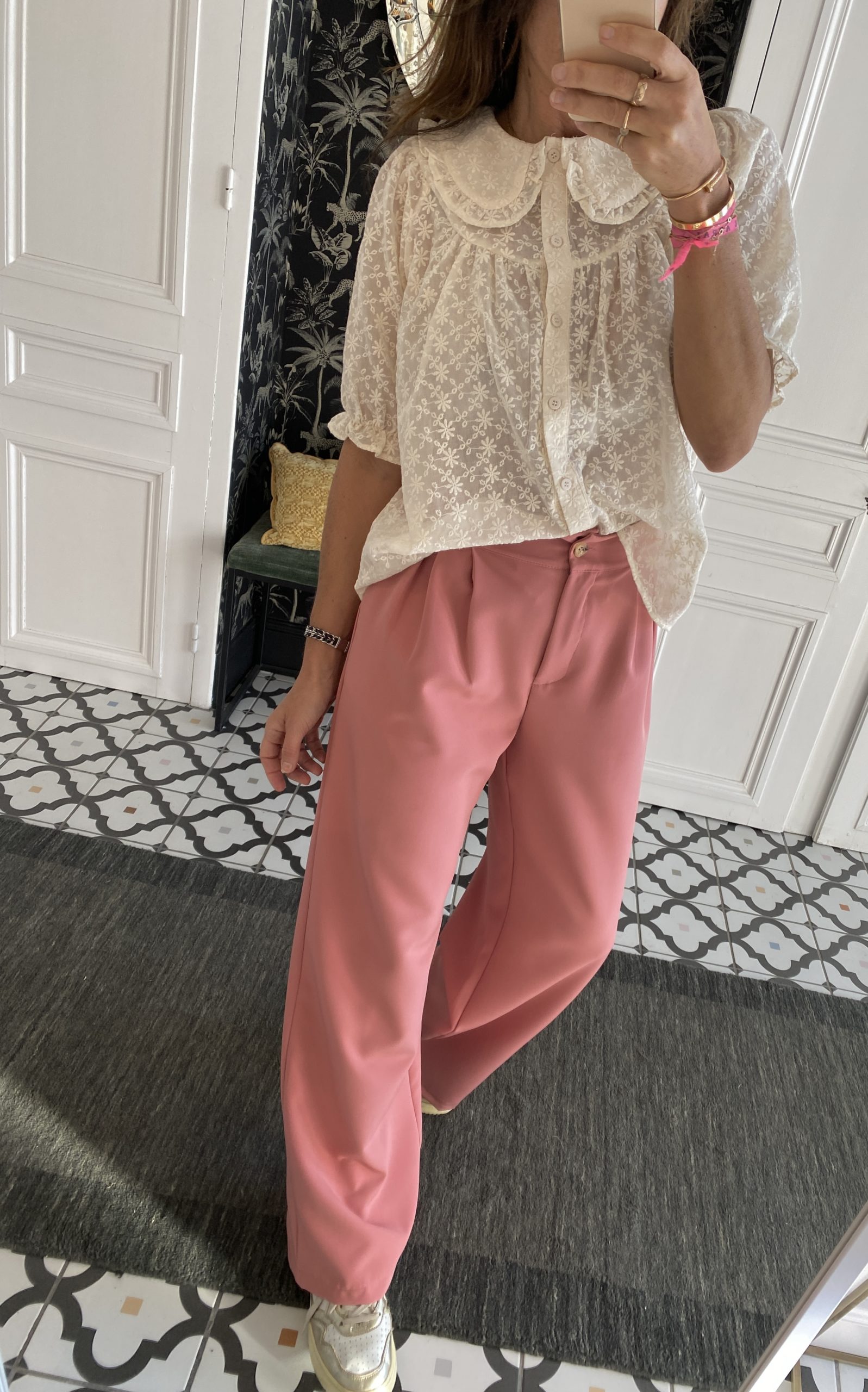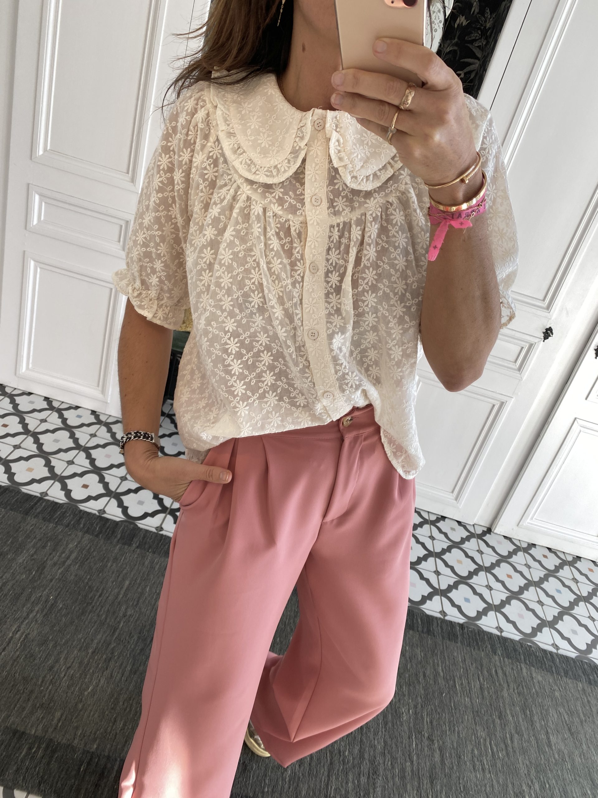Chemise brodée col claudine écru