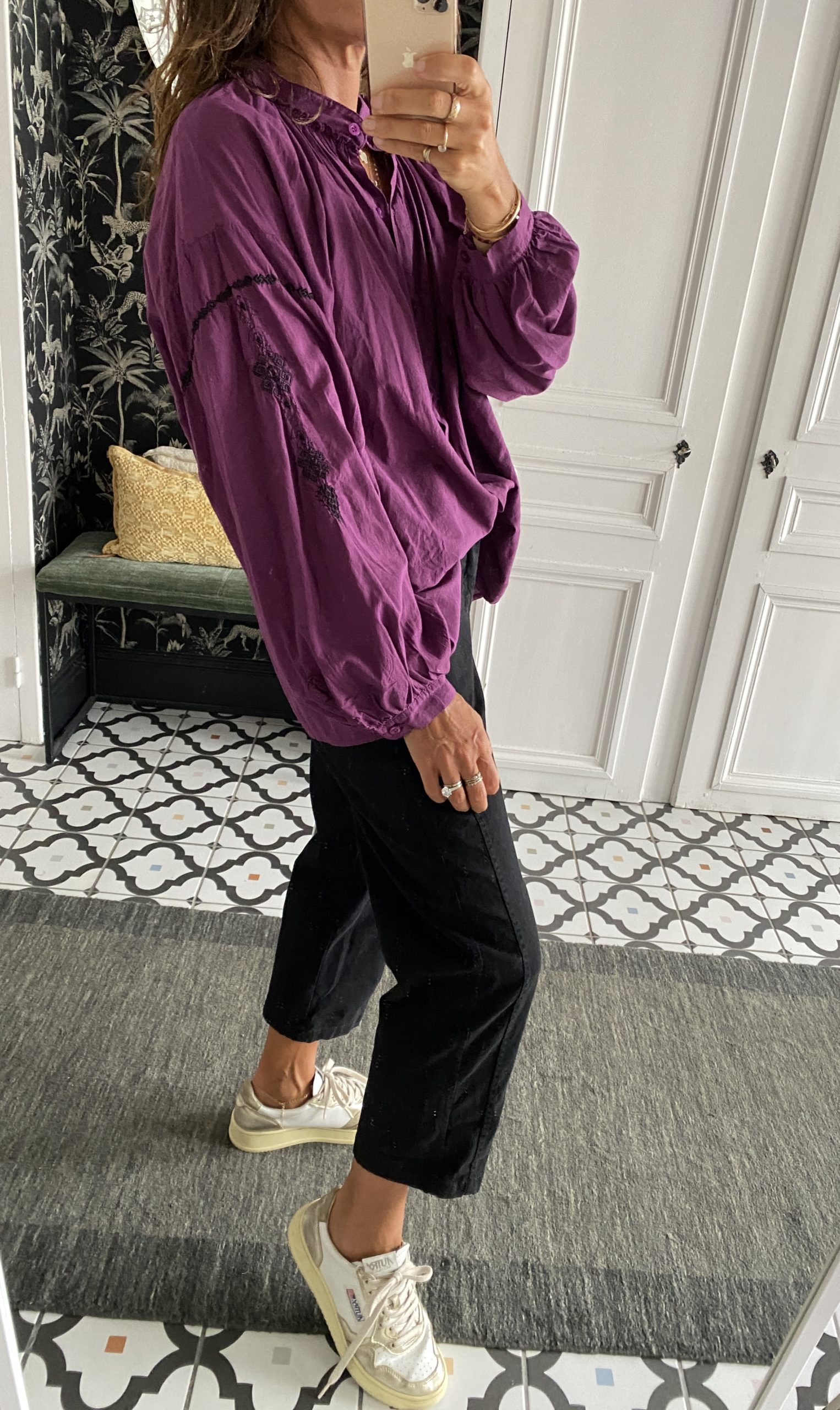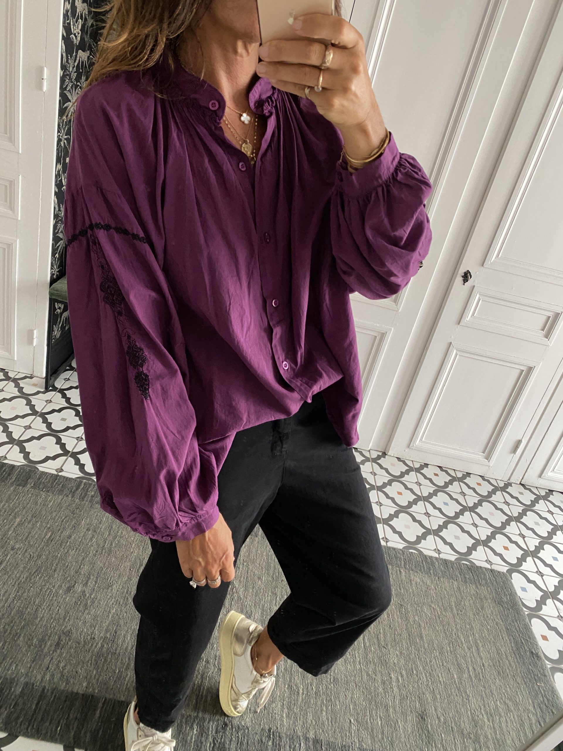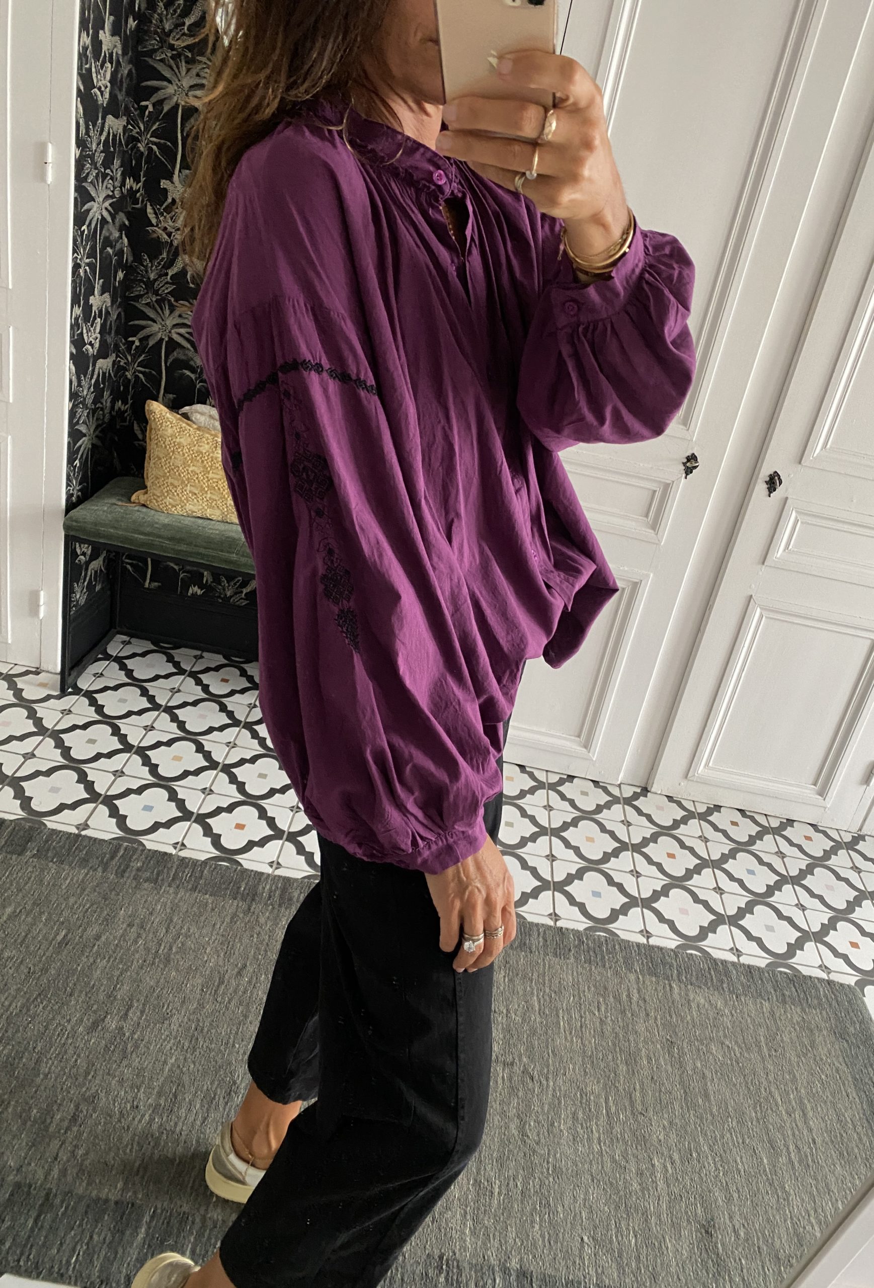 Chemise Johanna coton manches brodées violet