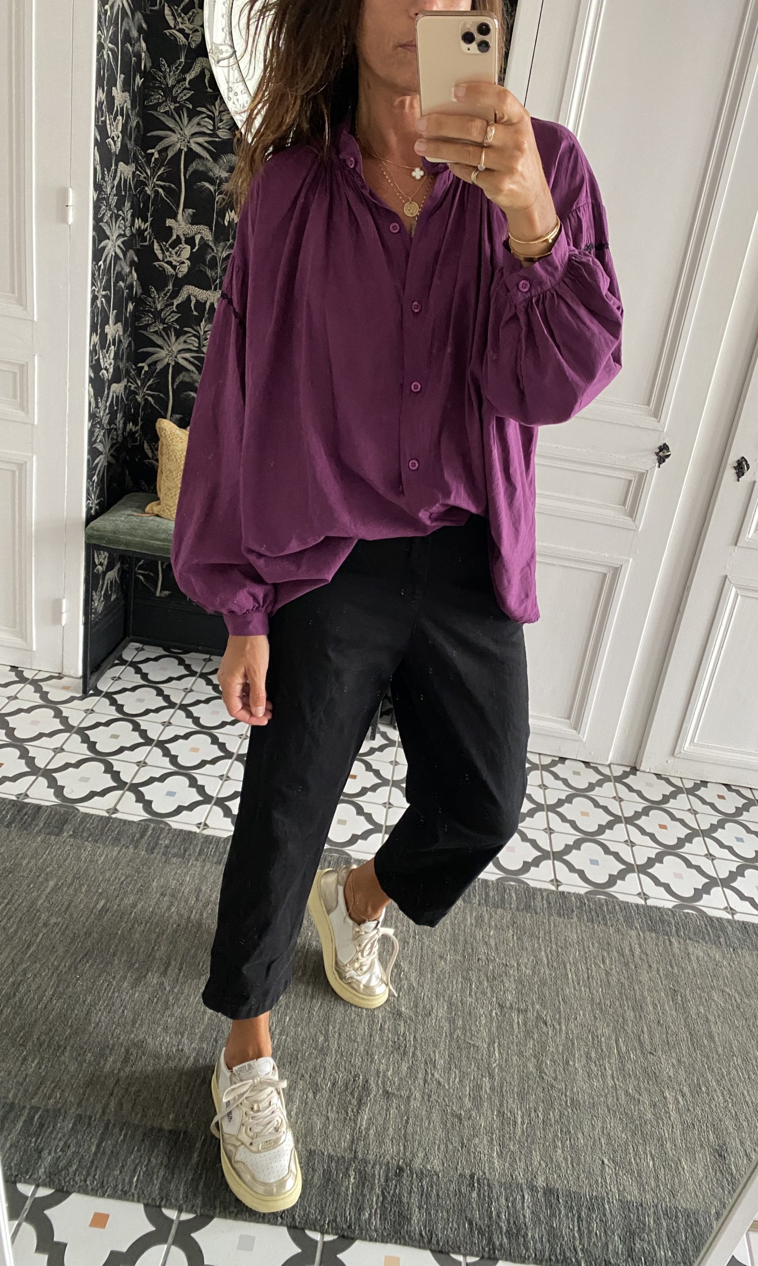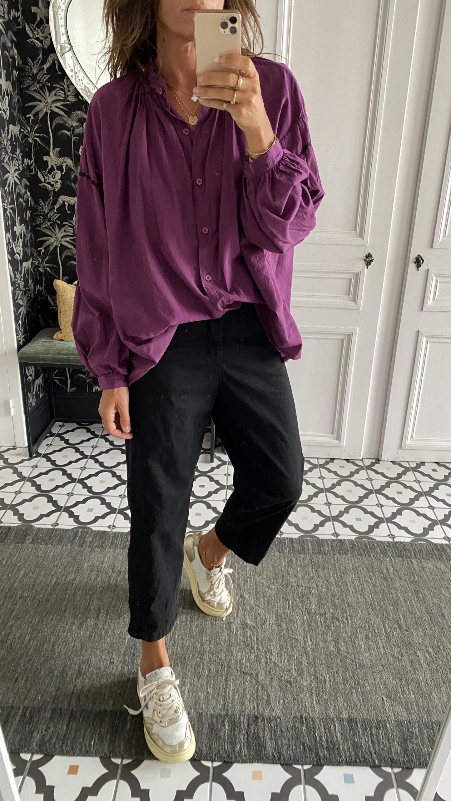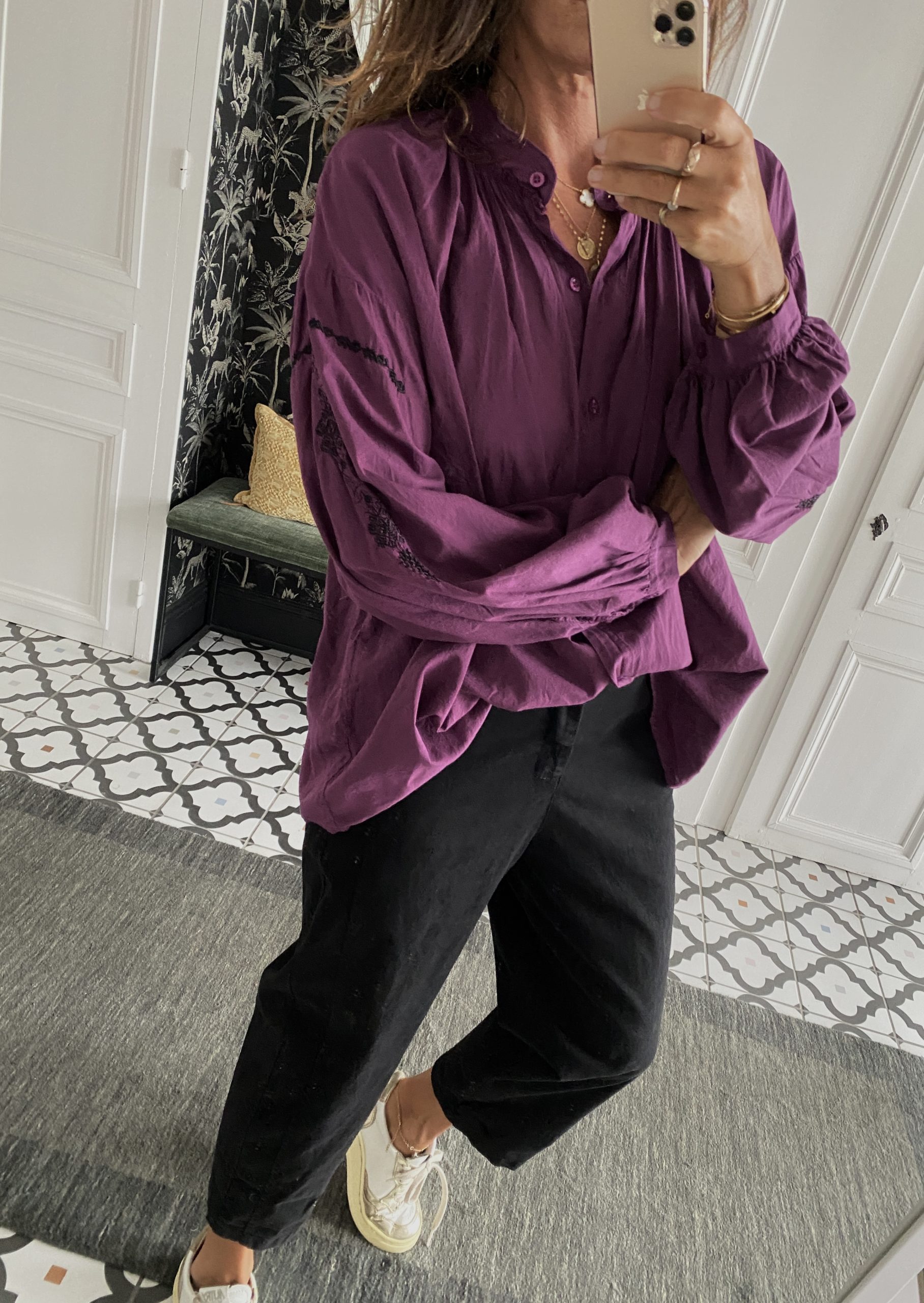 Chemise Johanna coton manches brodées violet