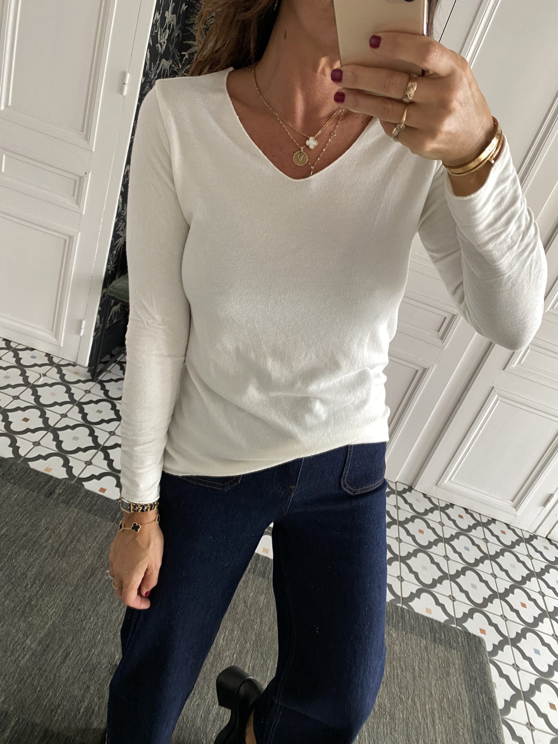 / Tee Shirt V basique blanc chaud