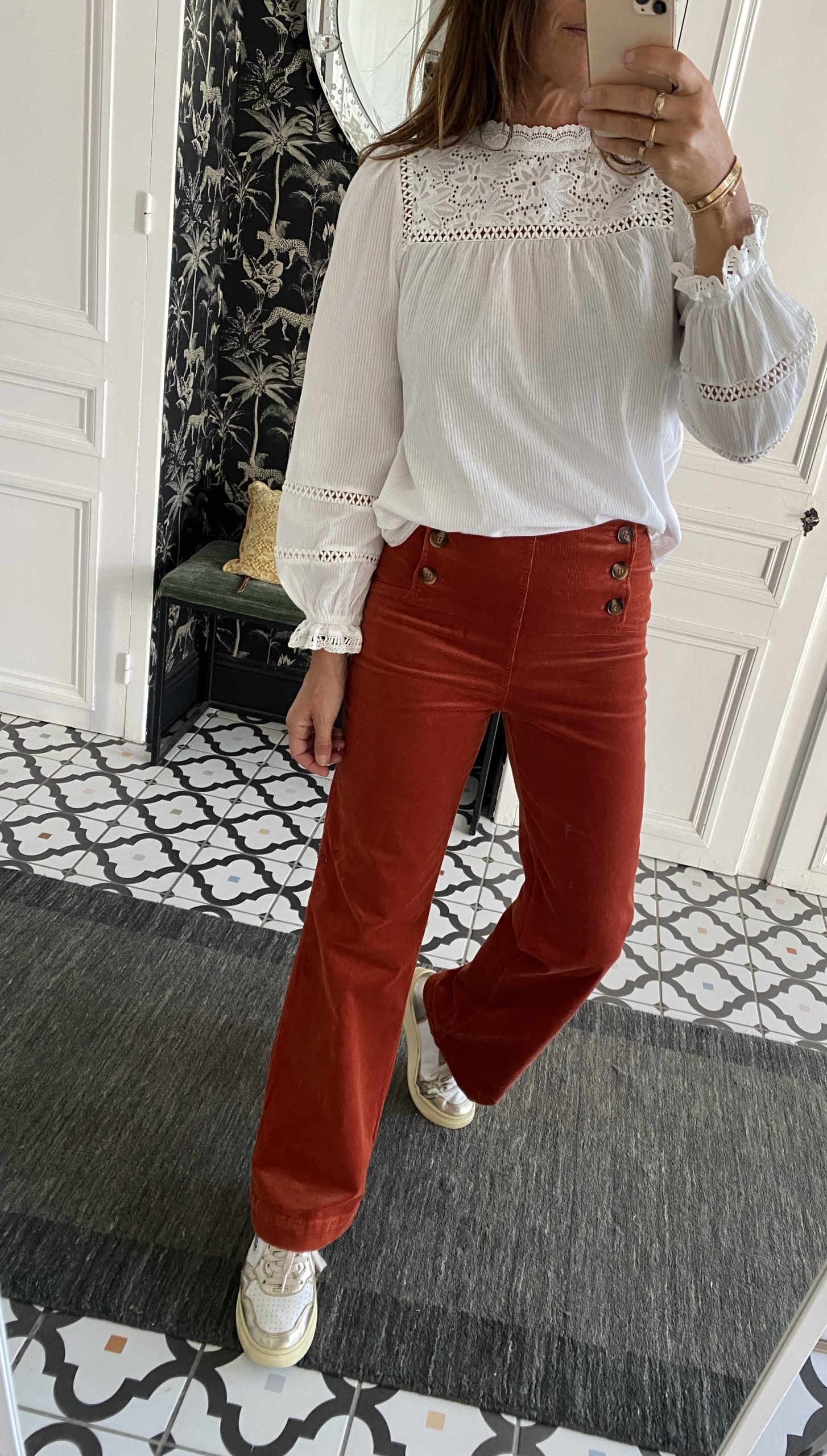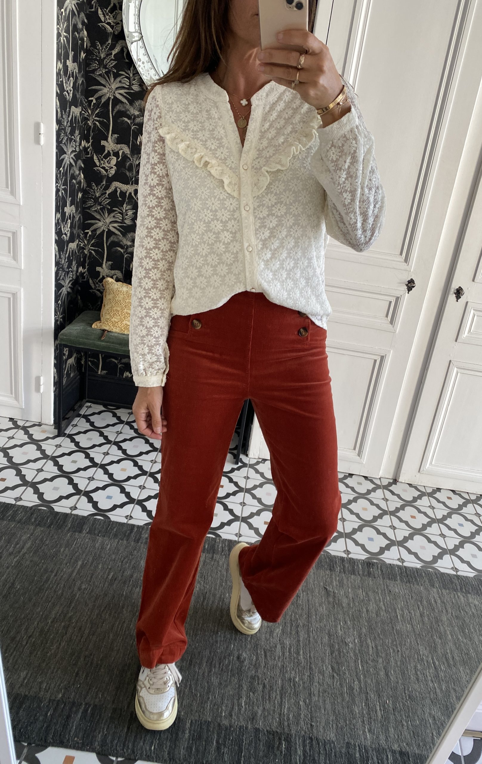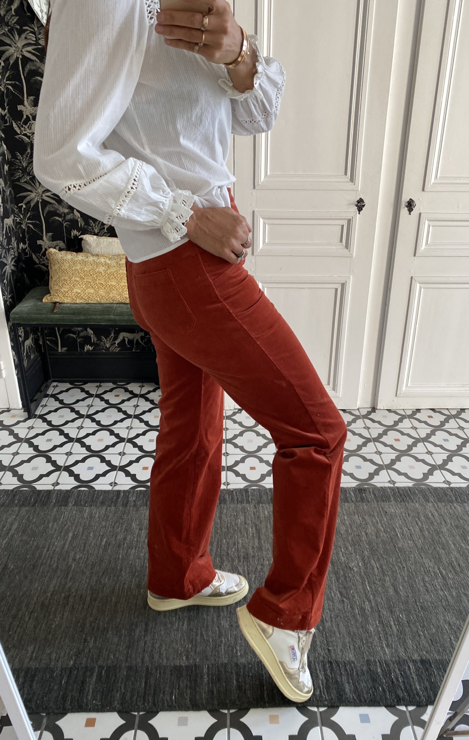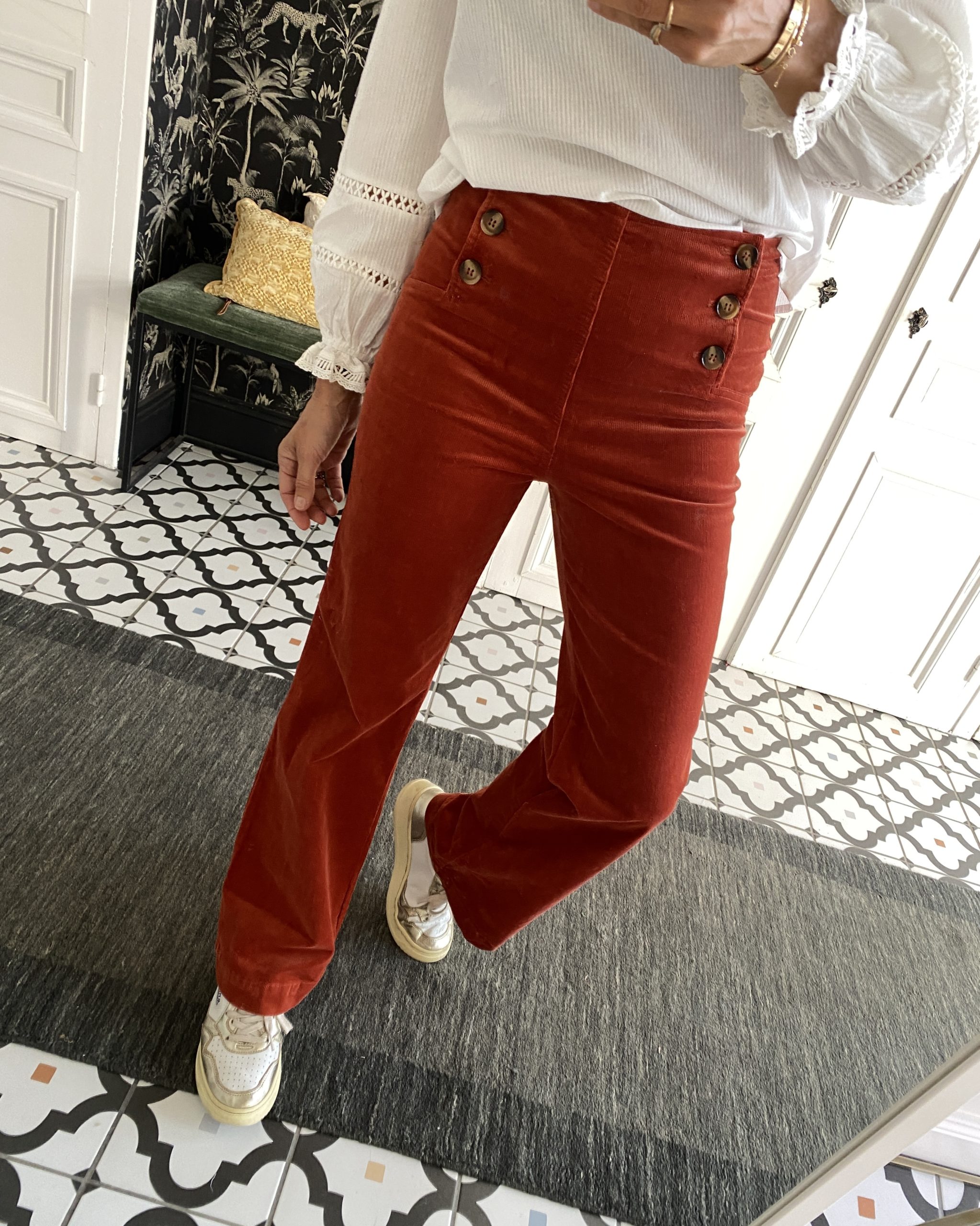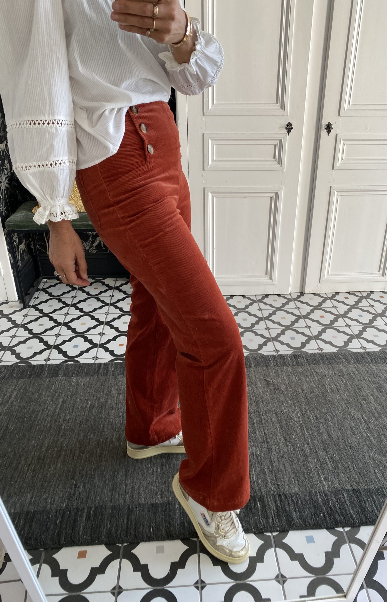 Pantalon boutons velours fin rouille