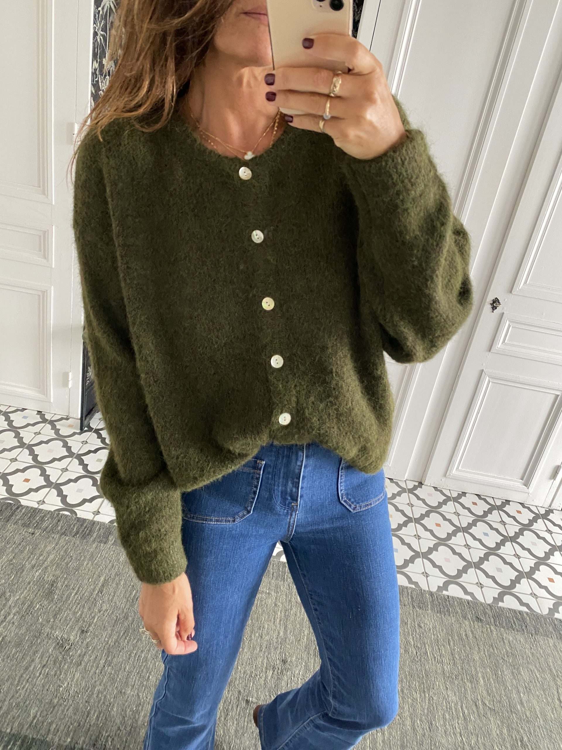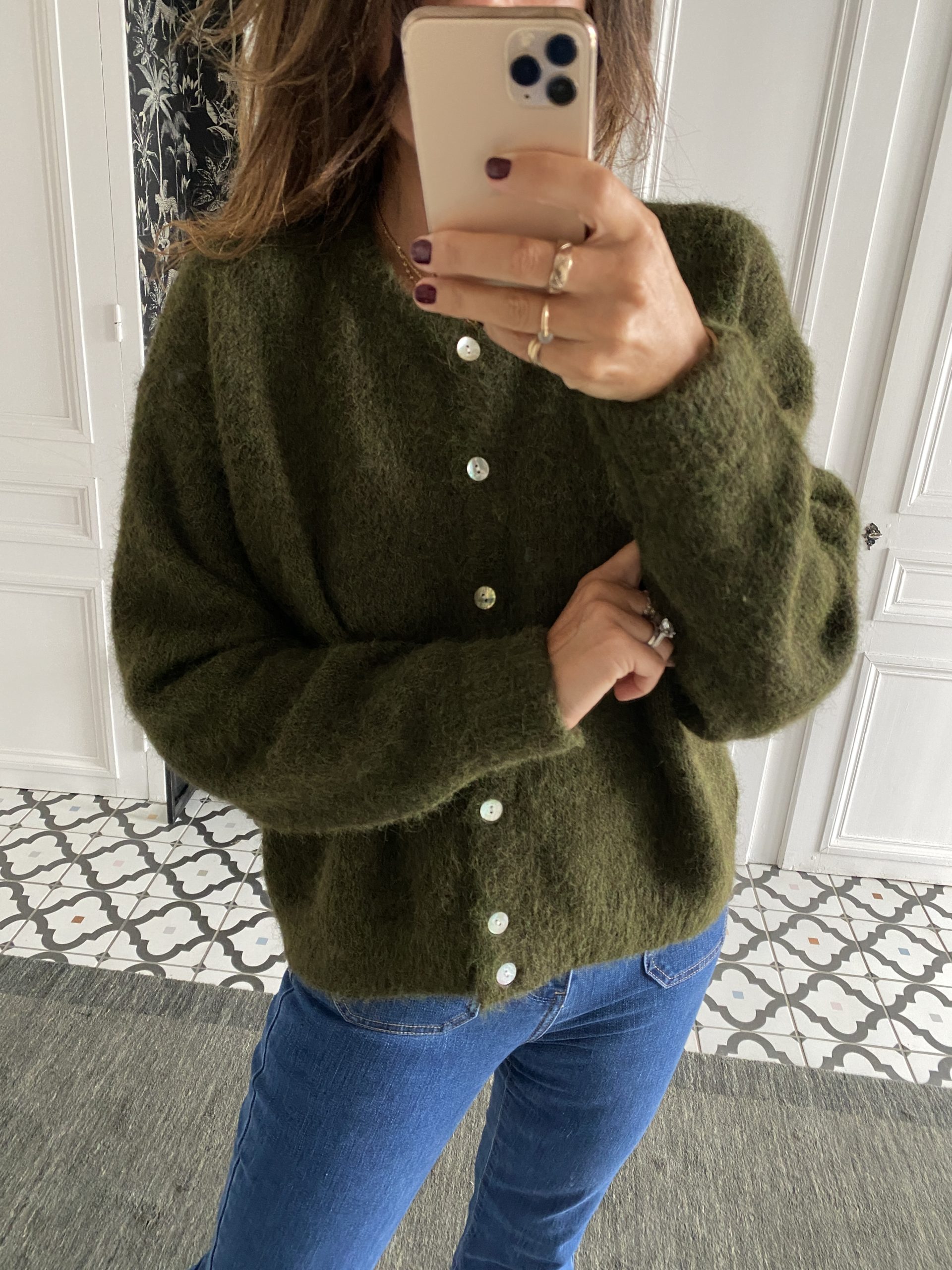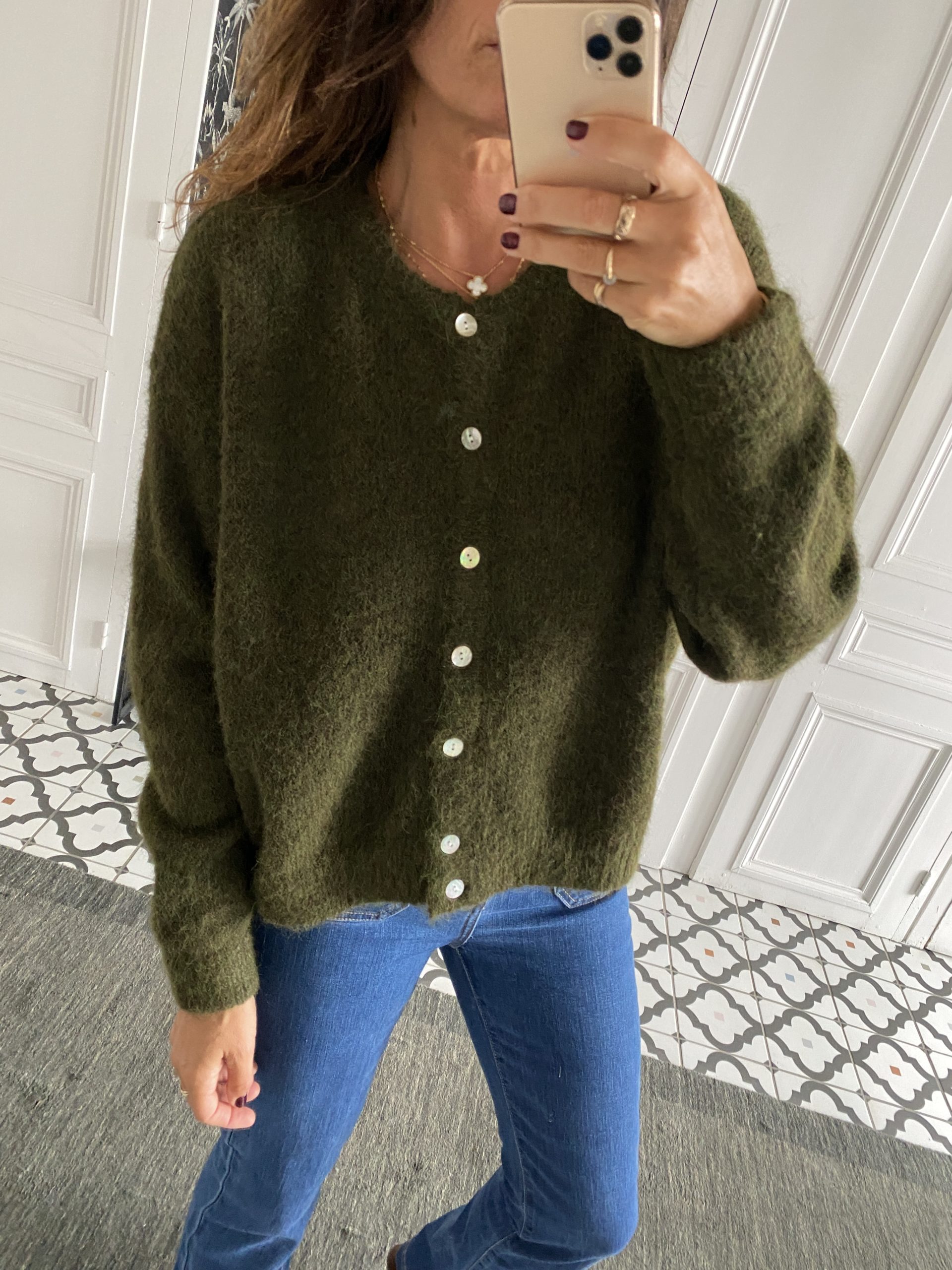 Gilet col rond boutonné kaki