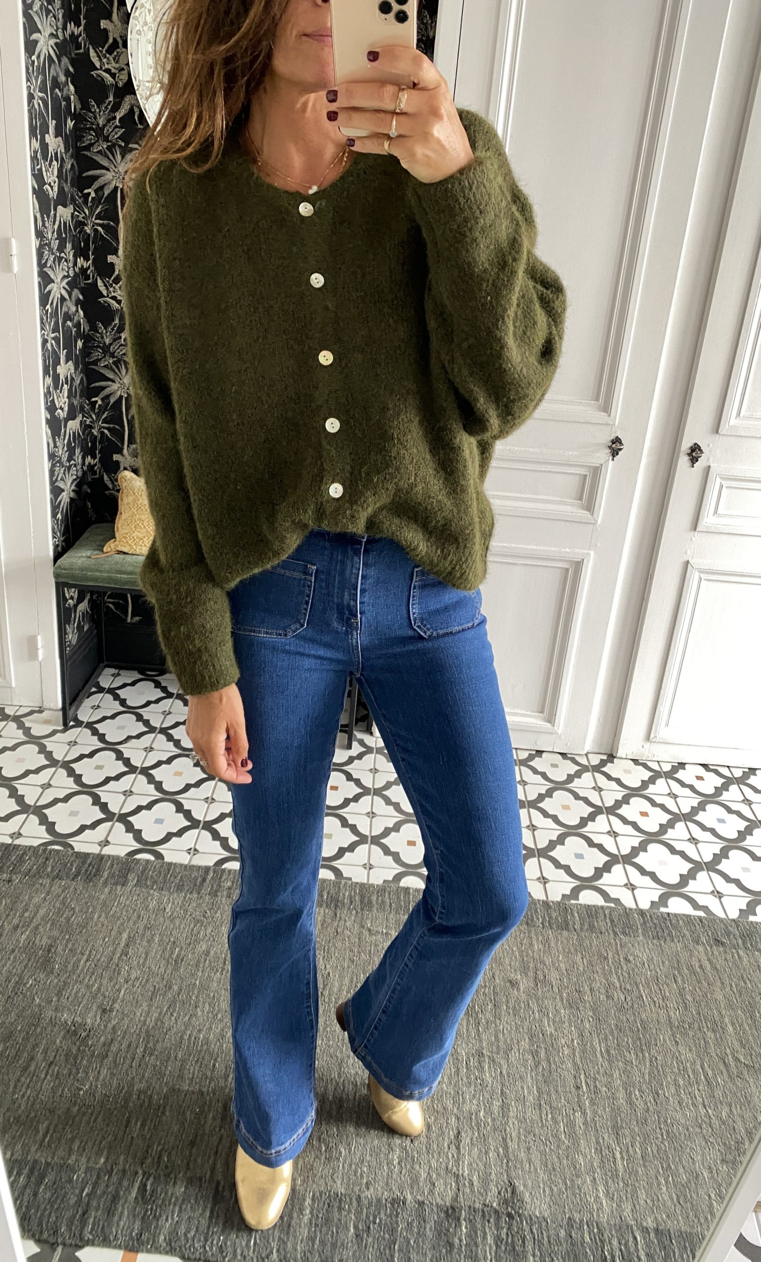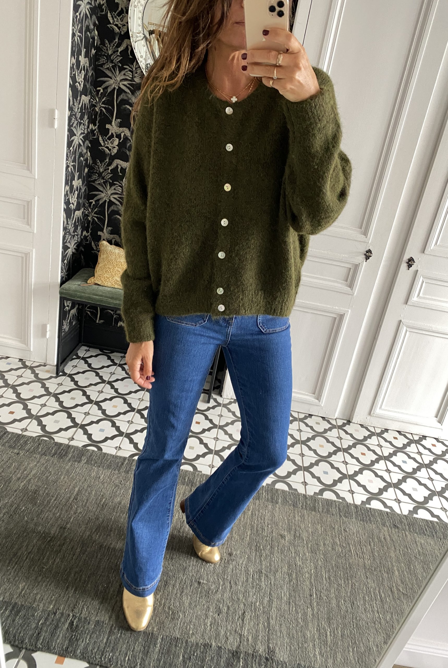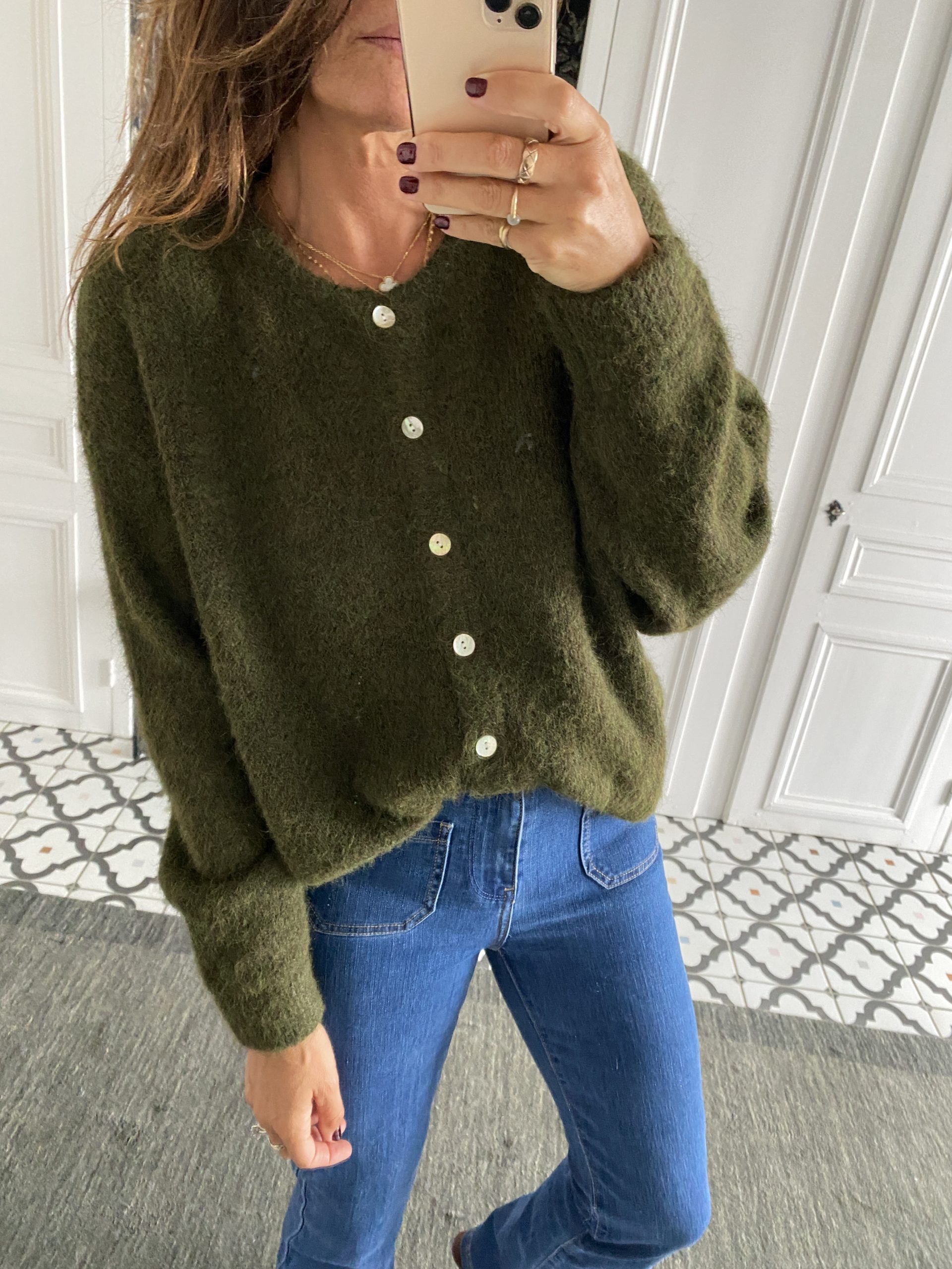 Gilet col rond boutonné kaki