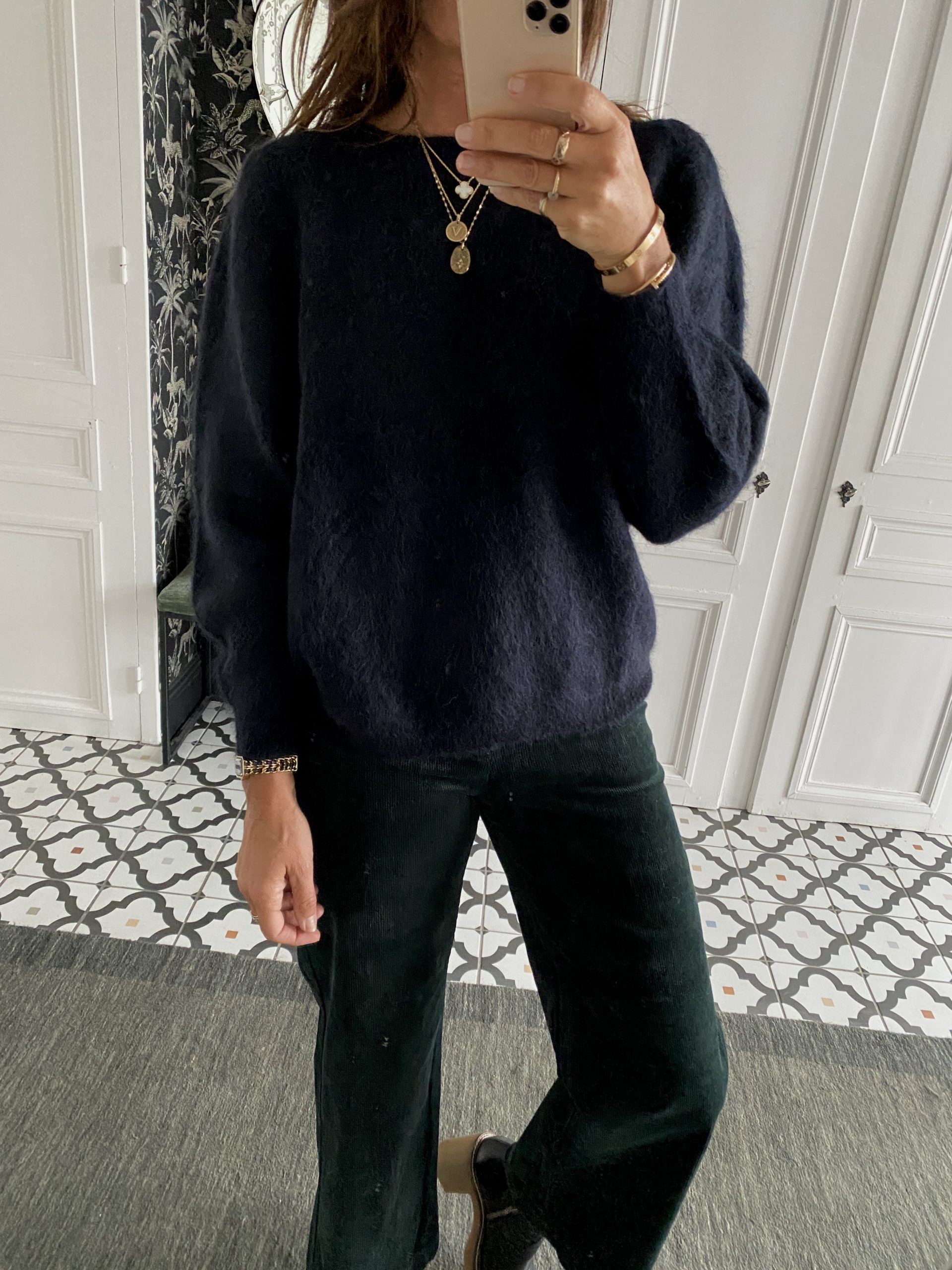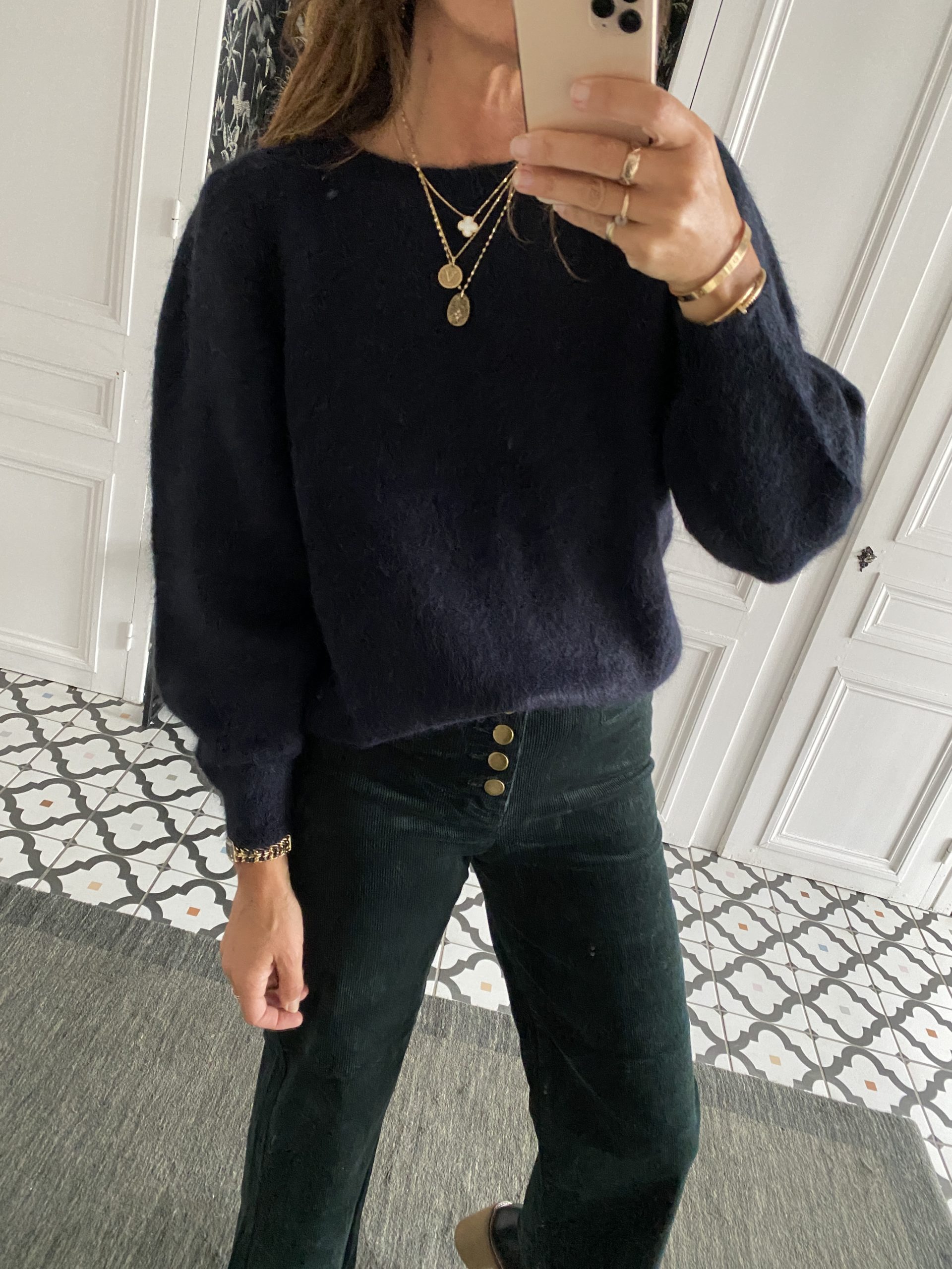 Pull alpaga manches froncées noir