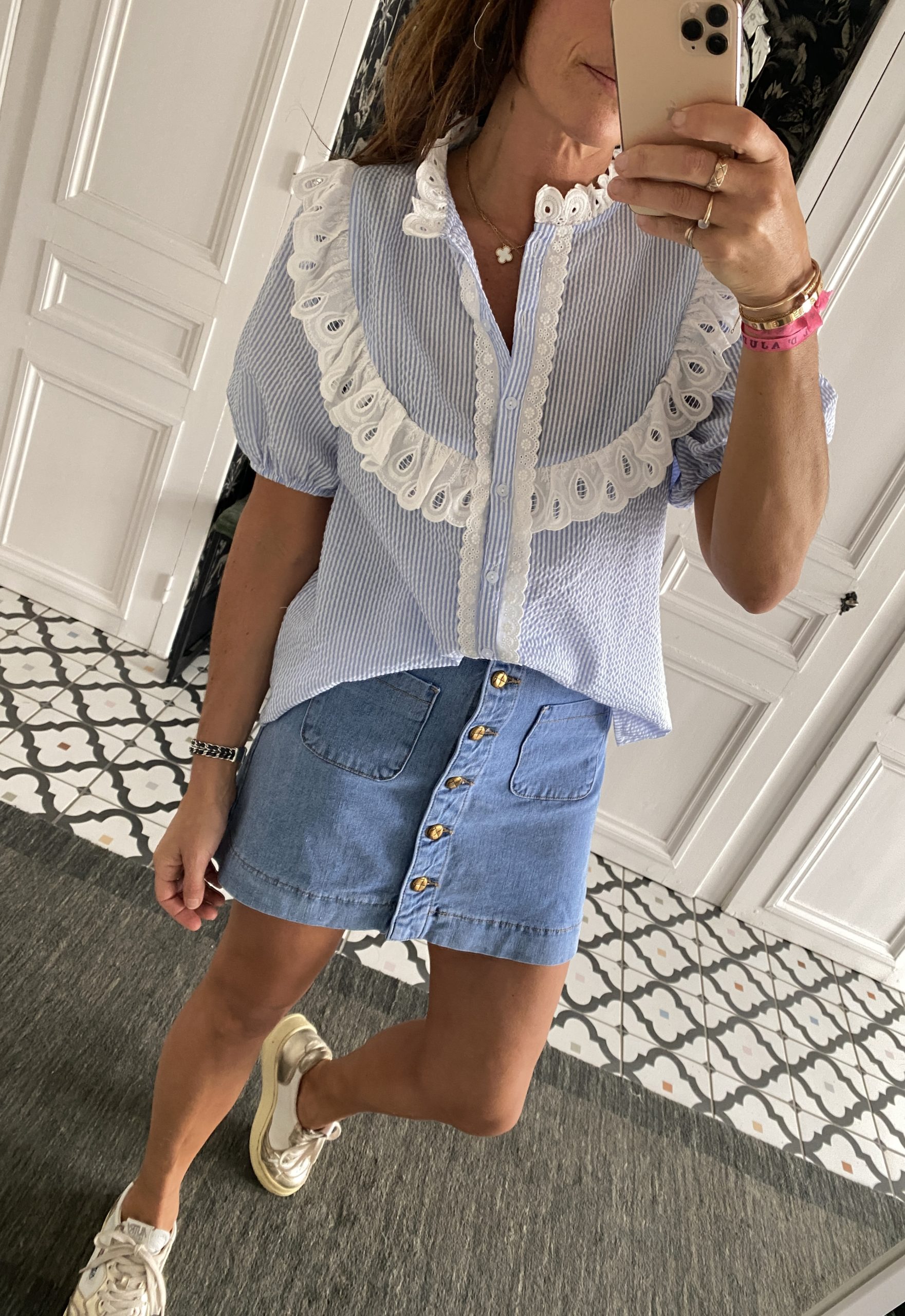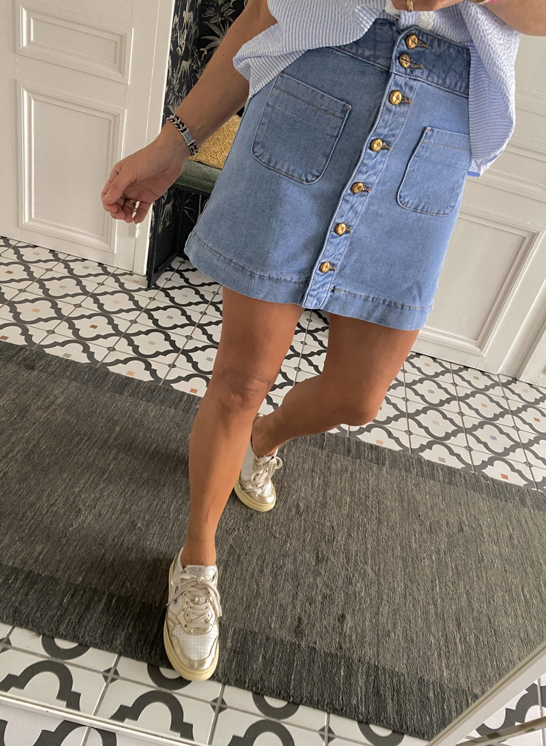 / Jupe jeans boutons ceinture cannage
