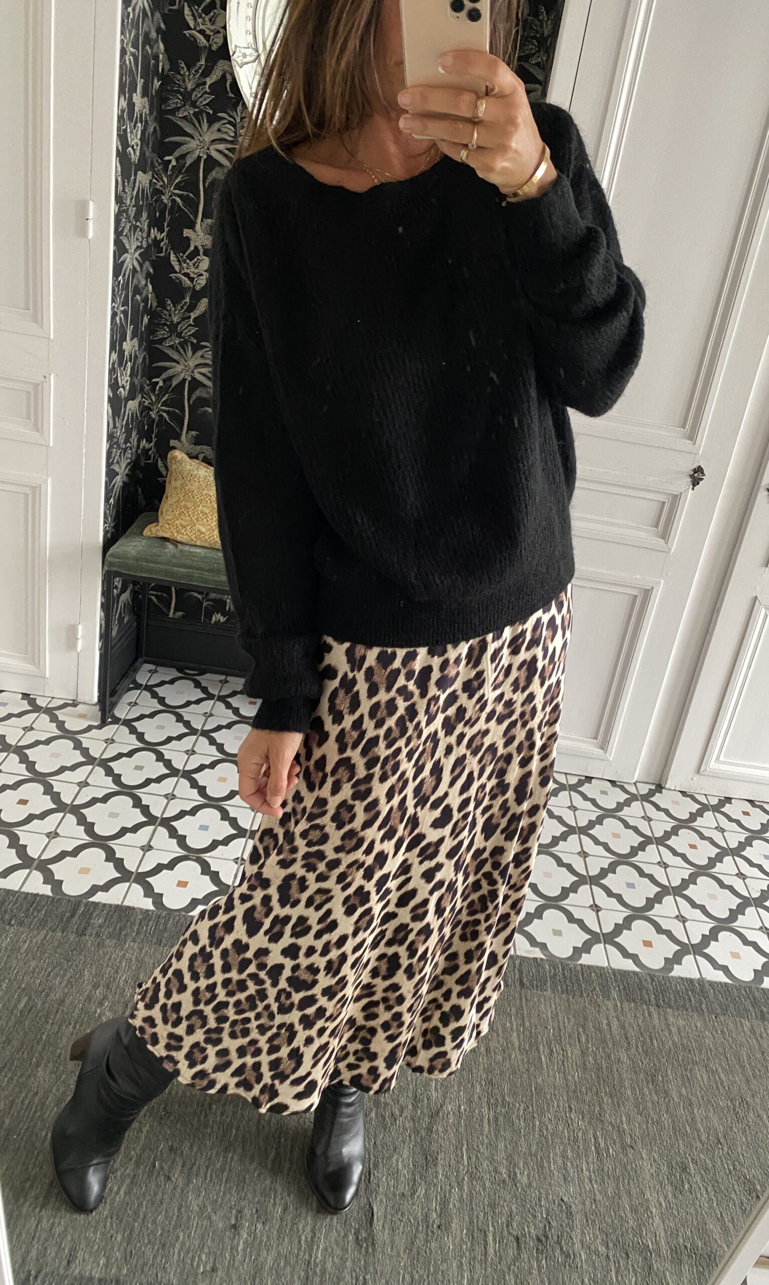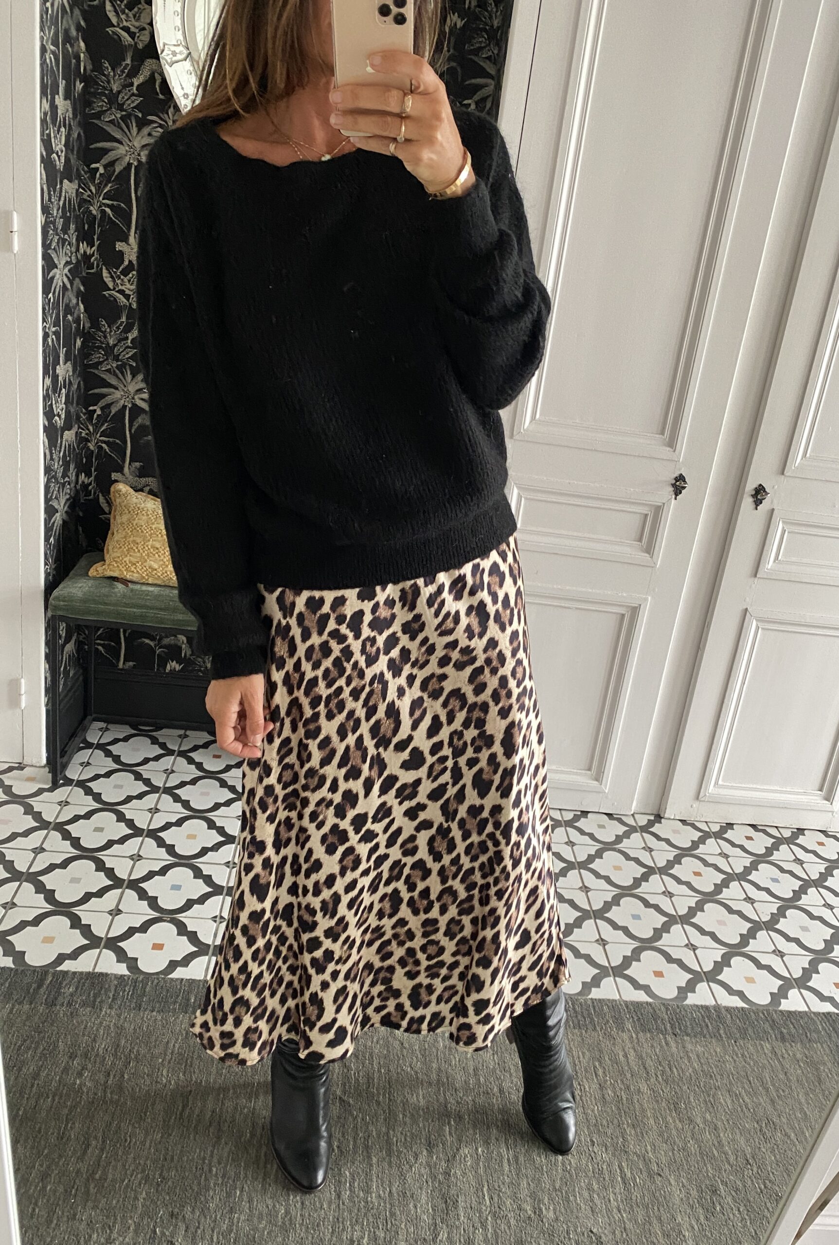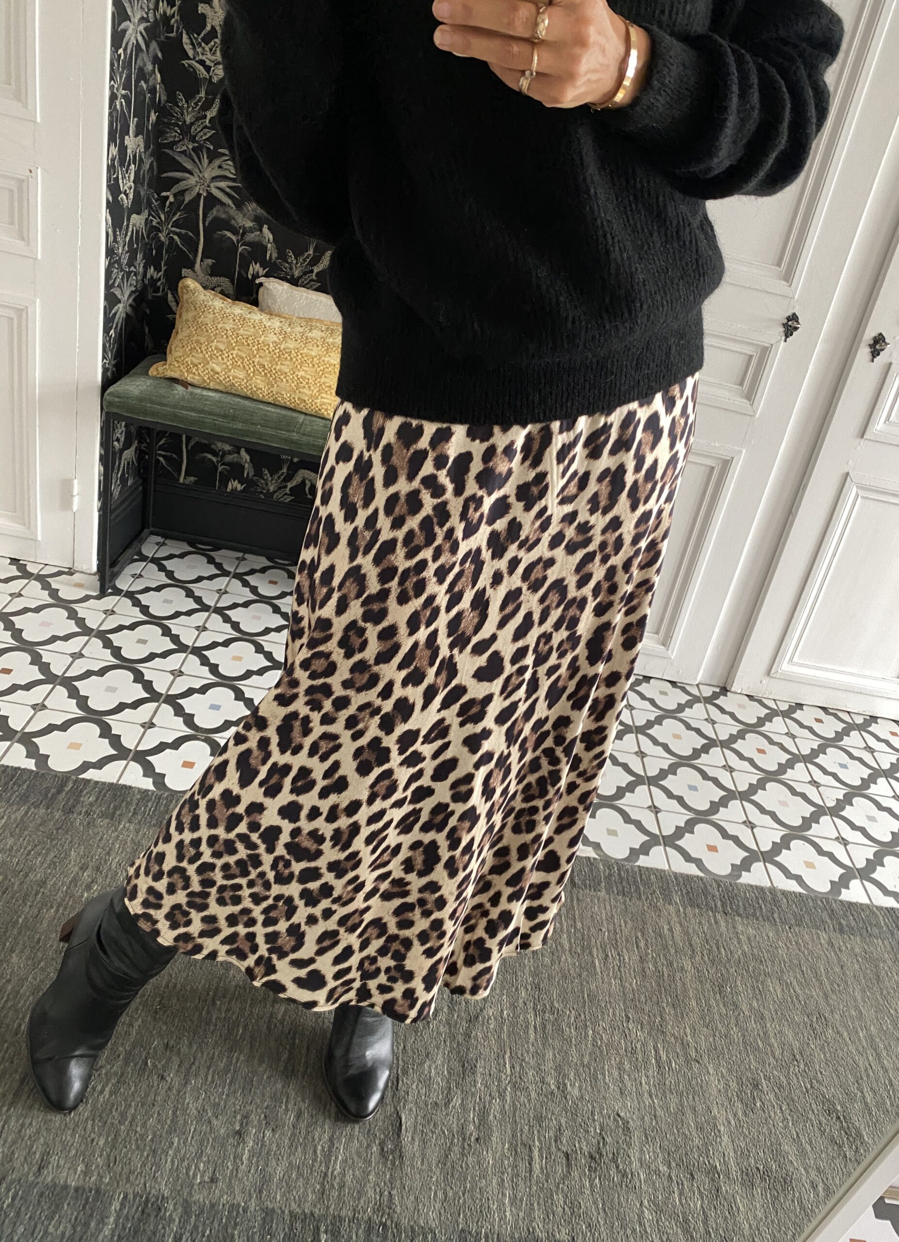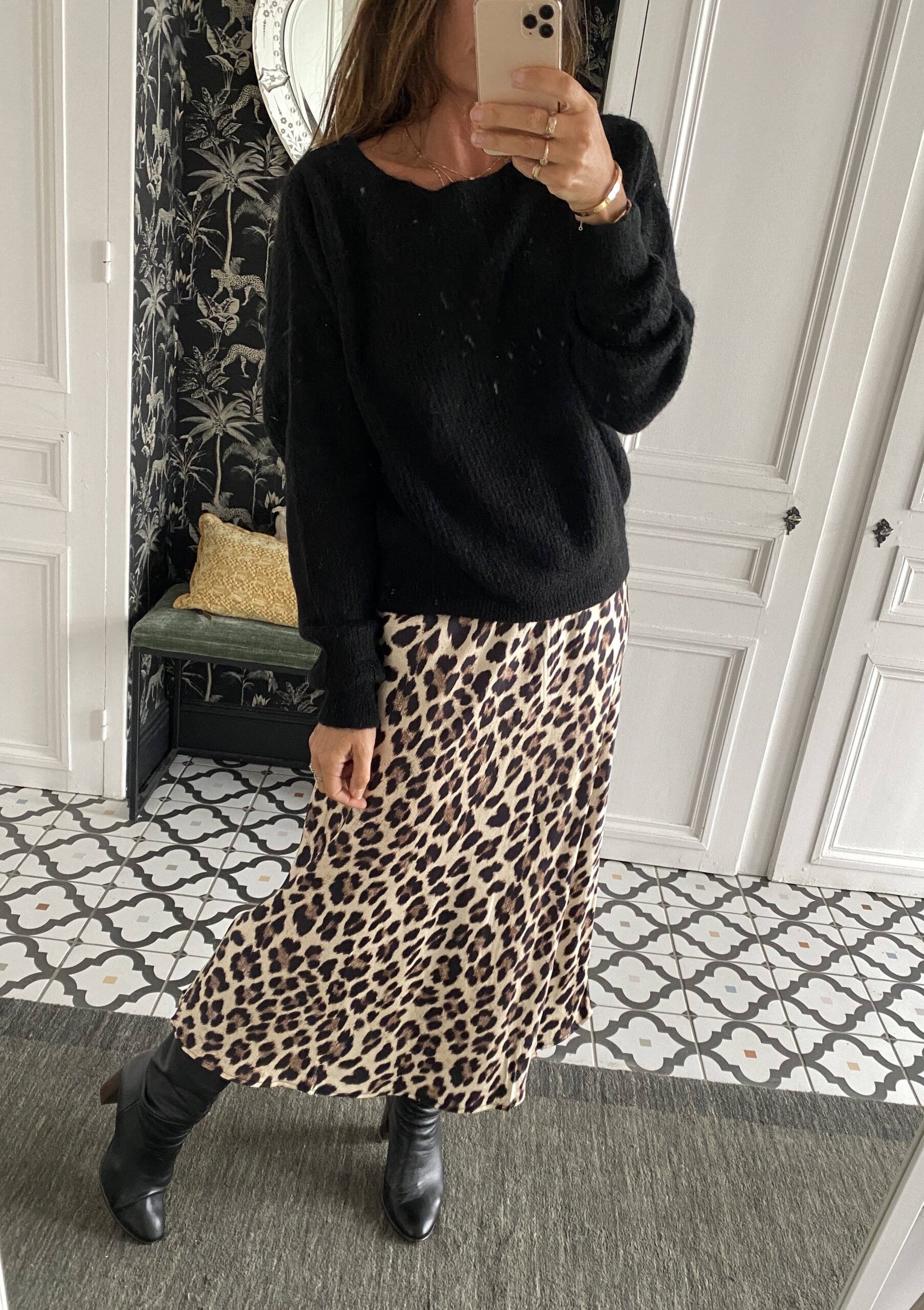 Jupe satinée léopard beige