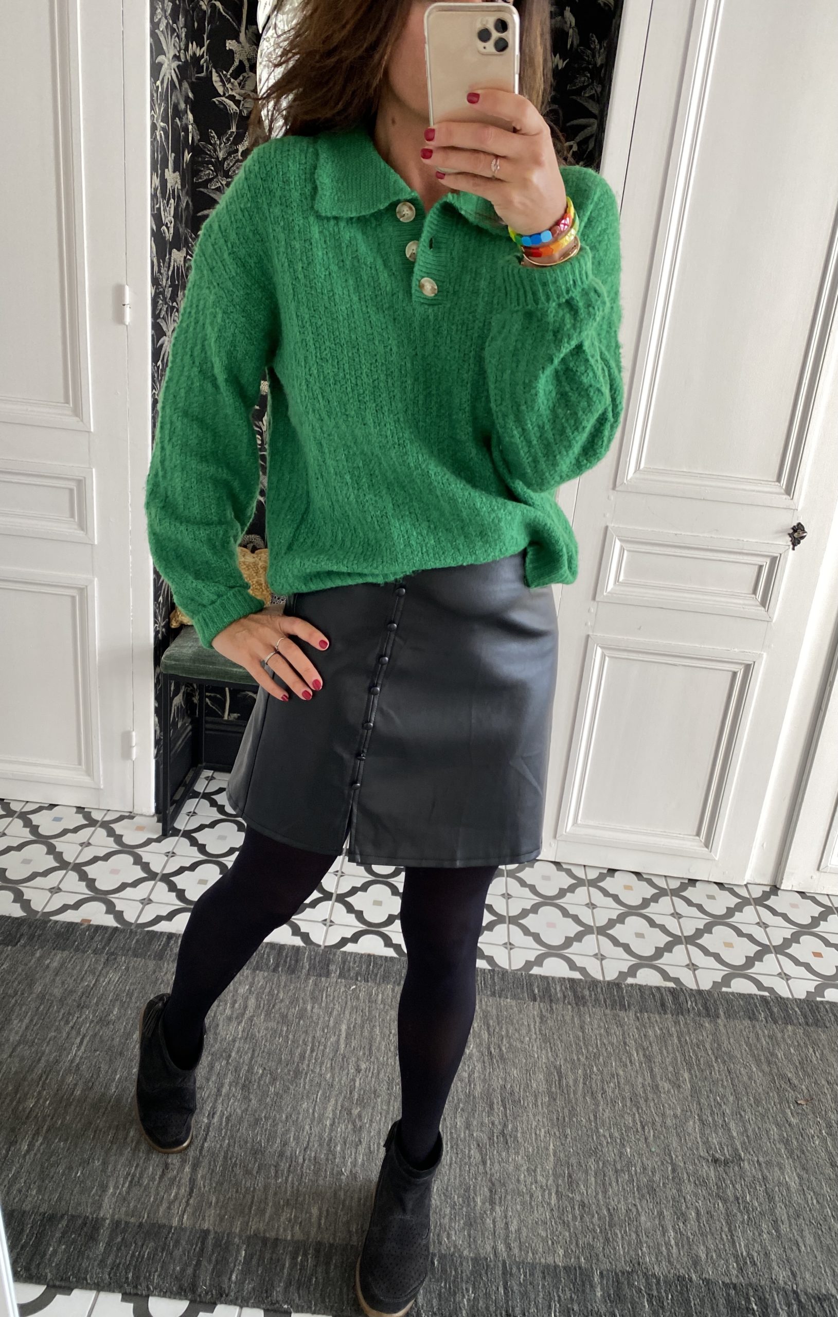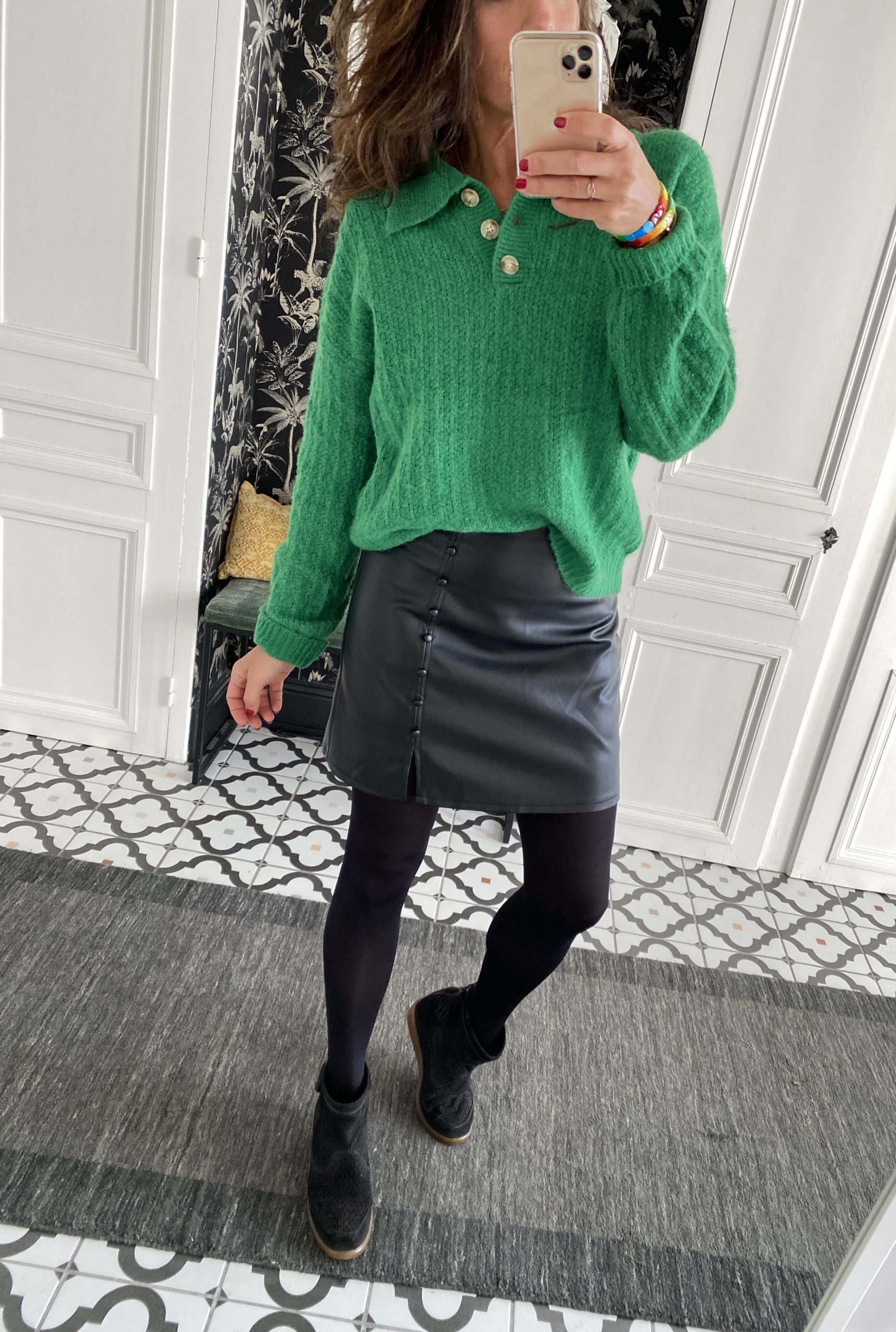 Mini jupe simili cuir noir