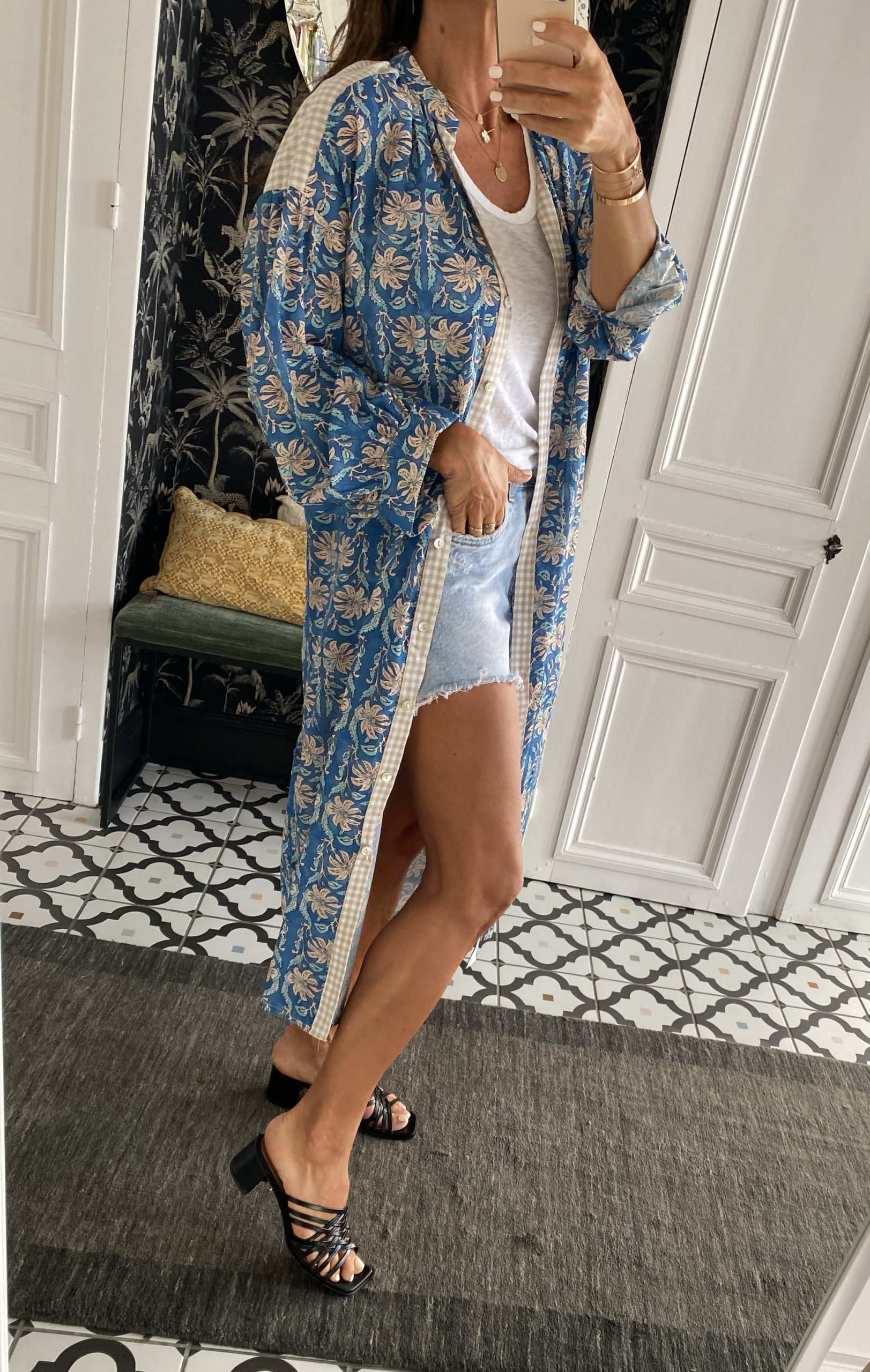A porter également ouverte sur un pantalon ou un short en jeans