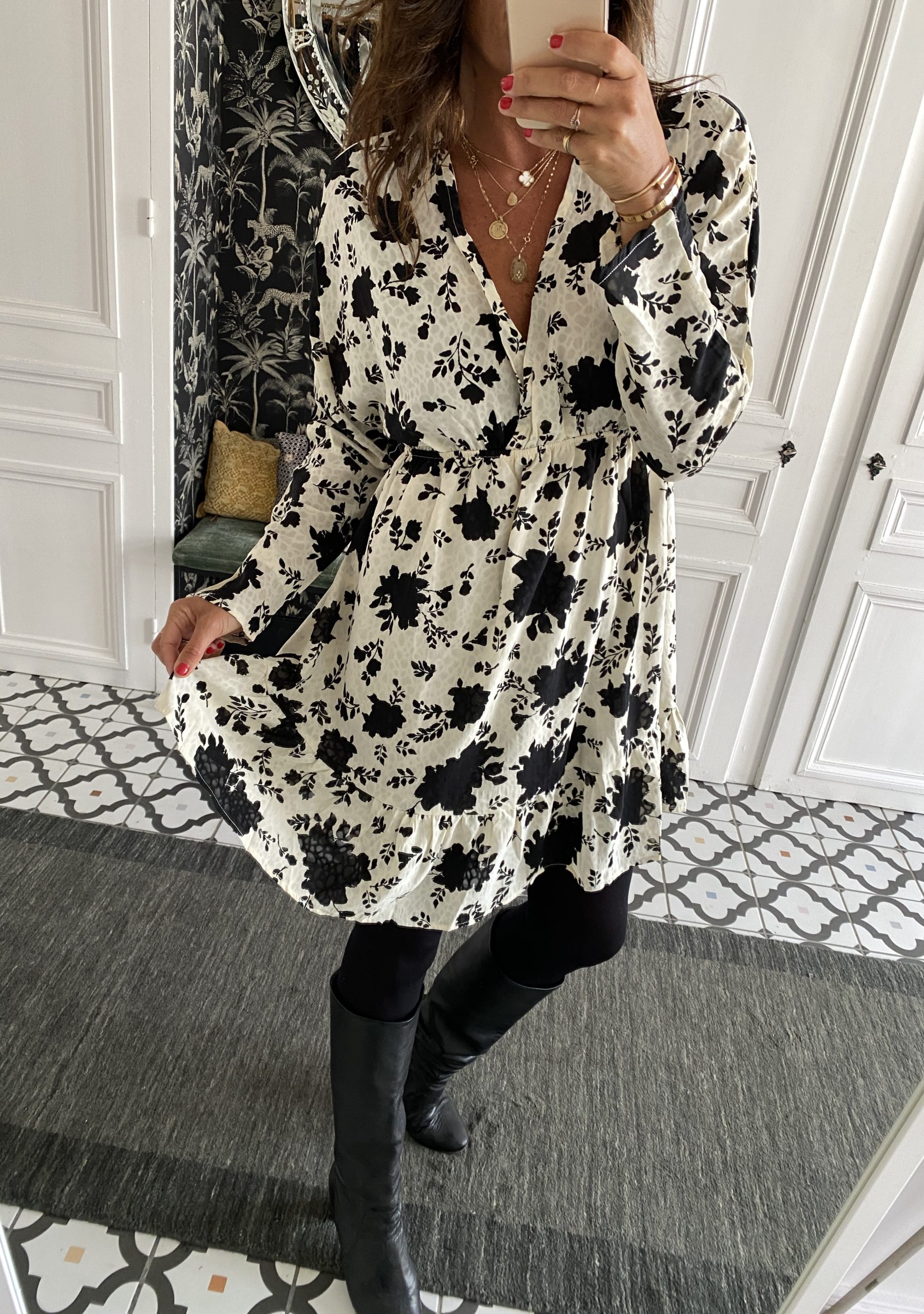 Robe flowers noir et blanc