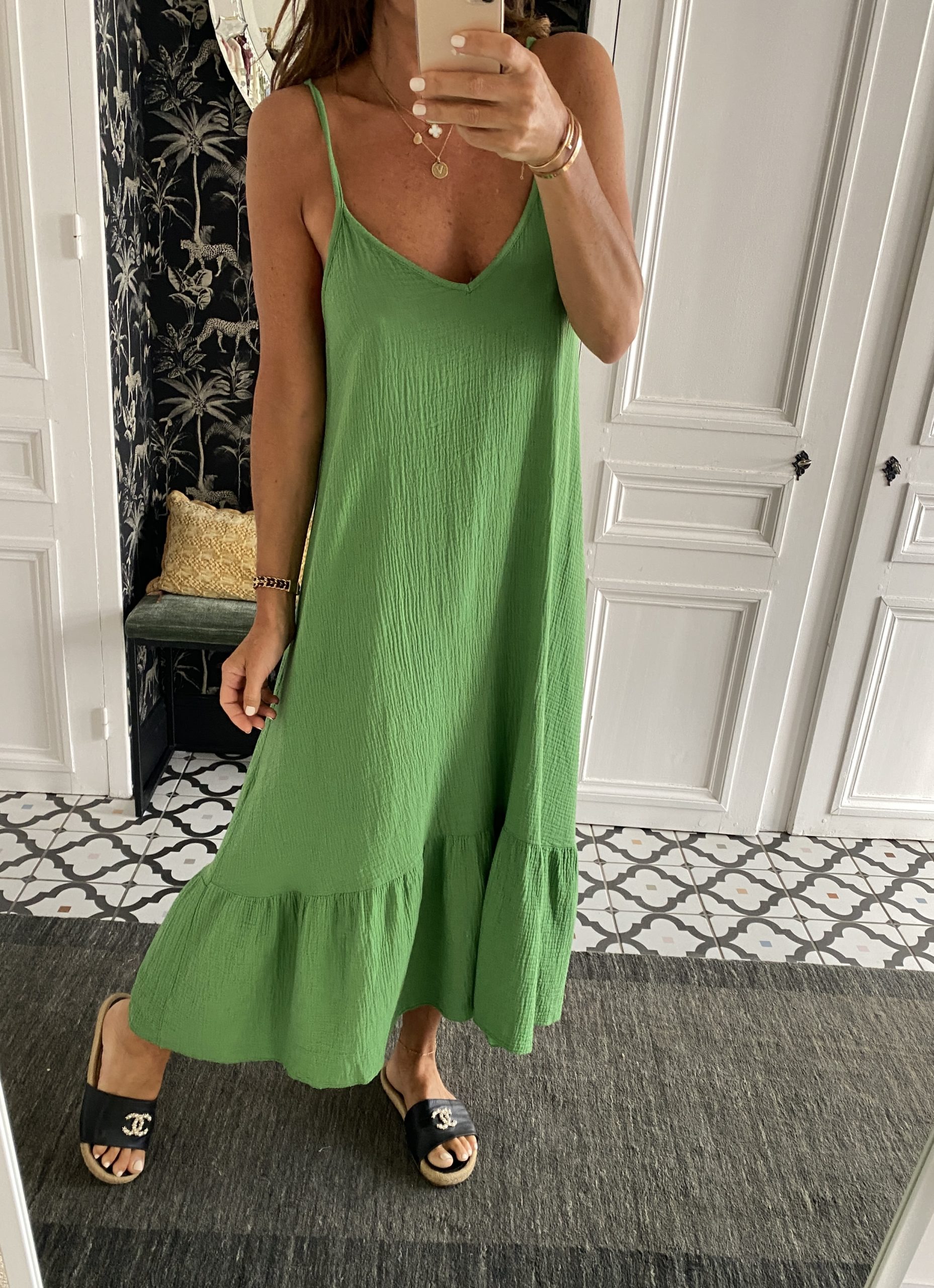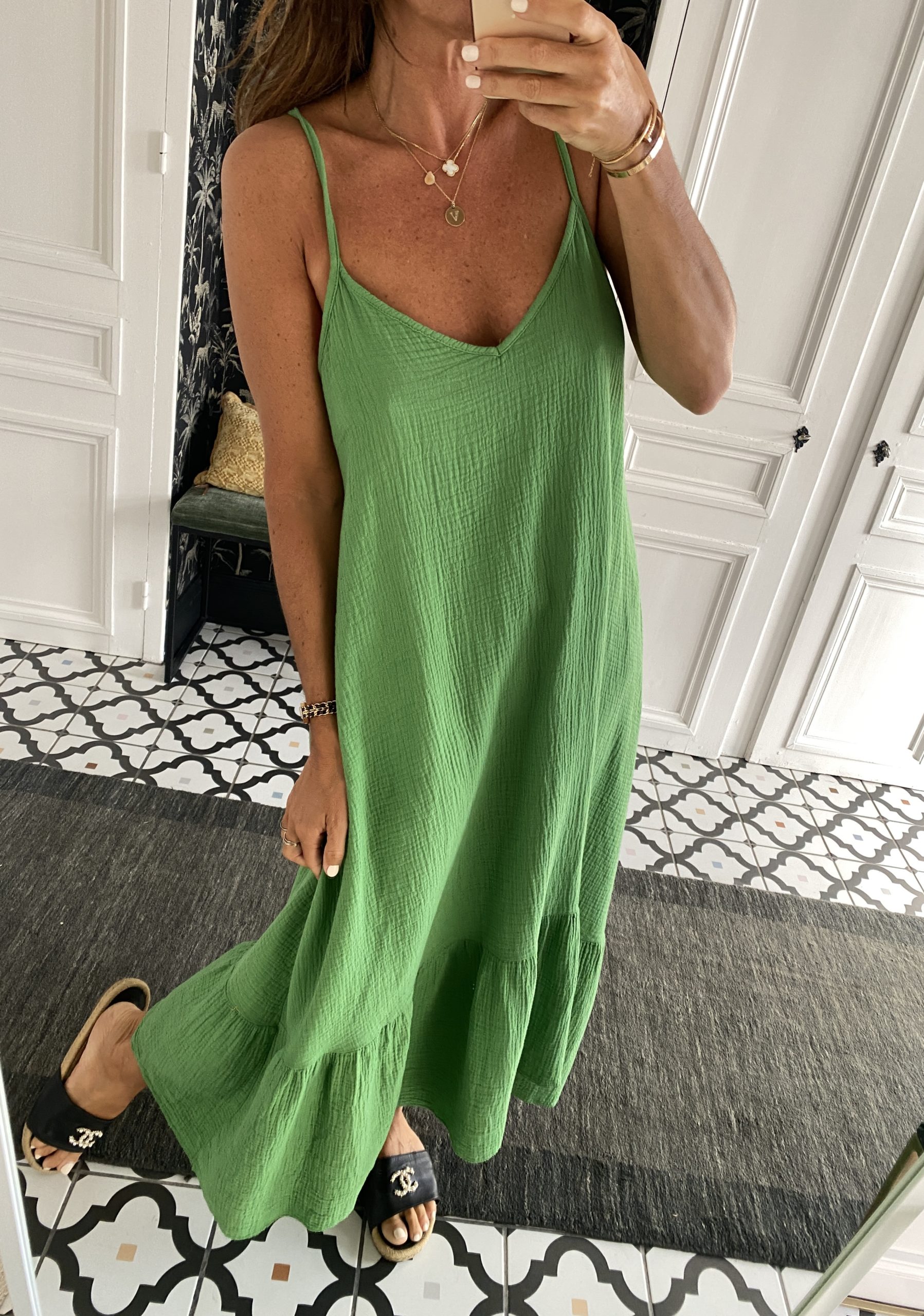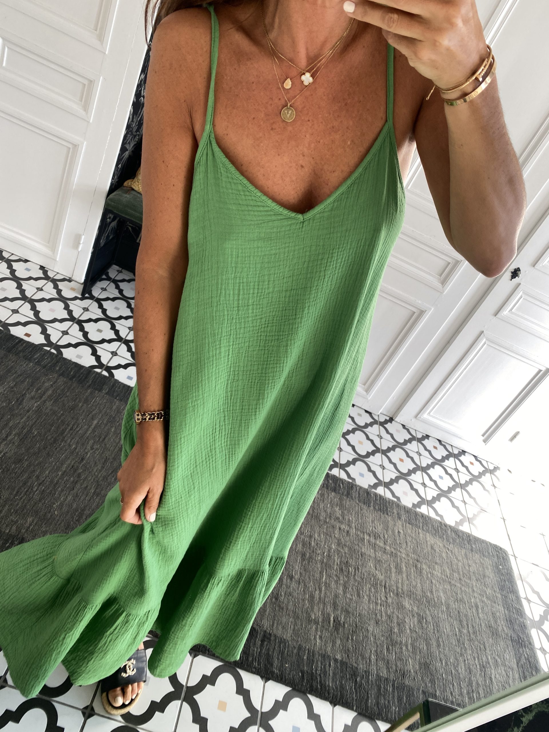 Robe gaze de coton fines bretelles vert