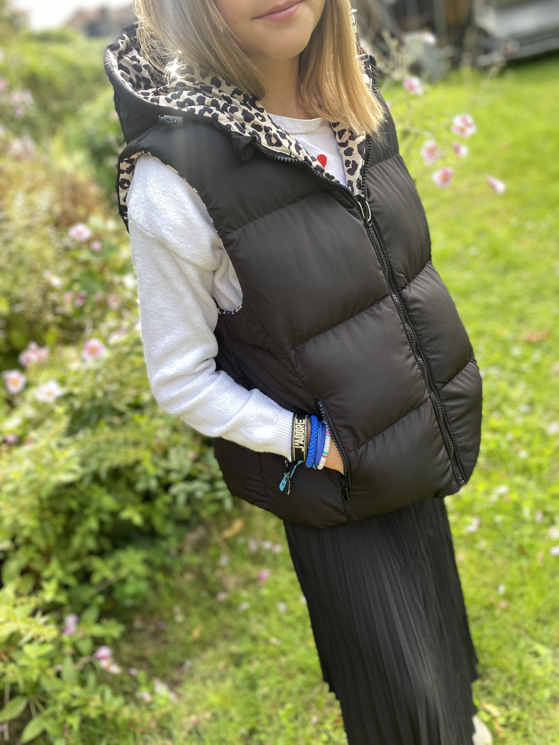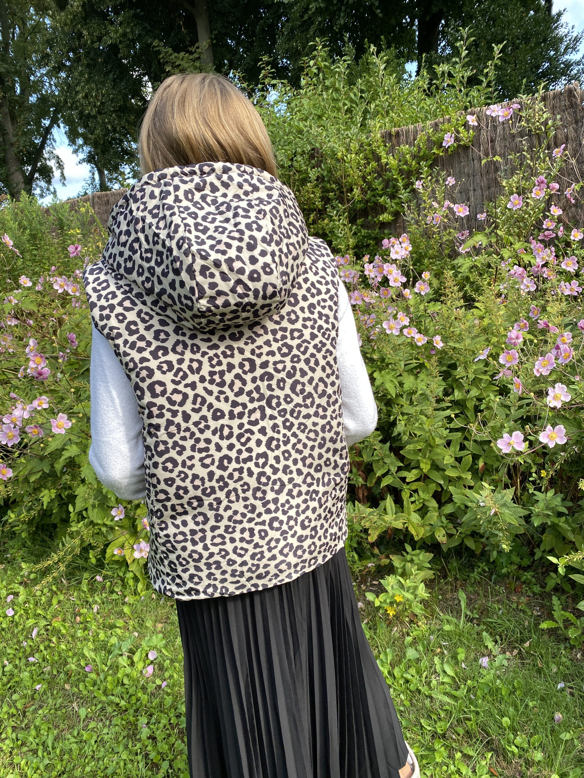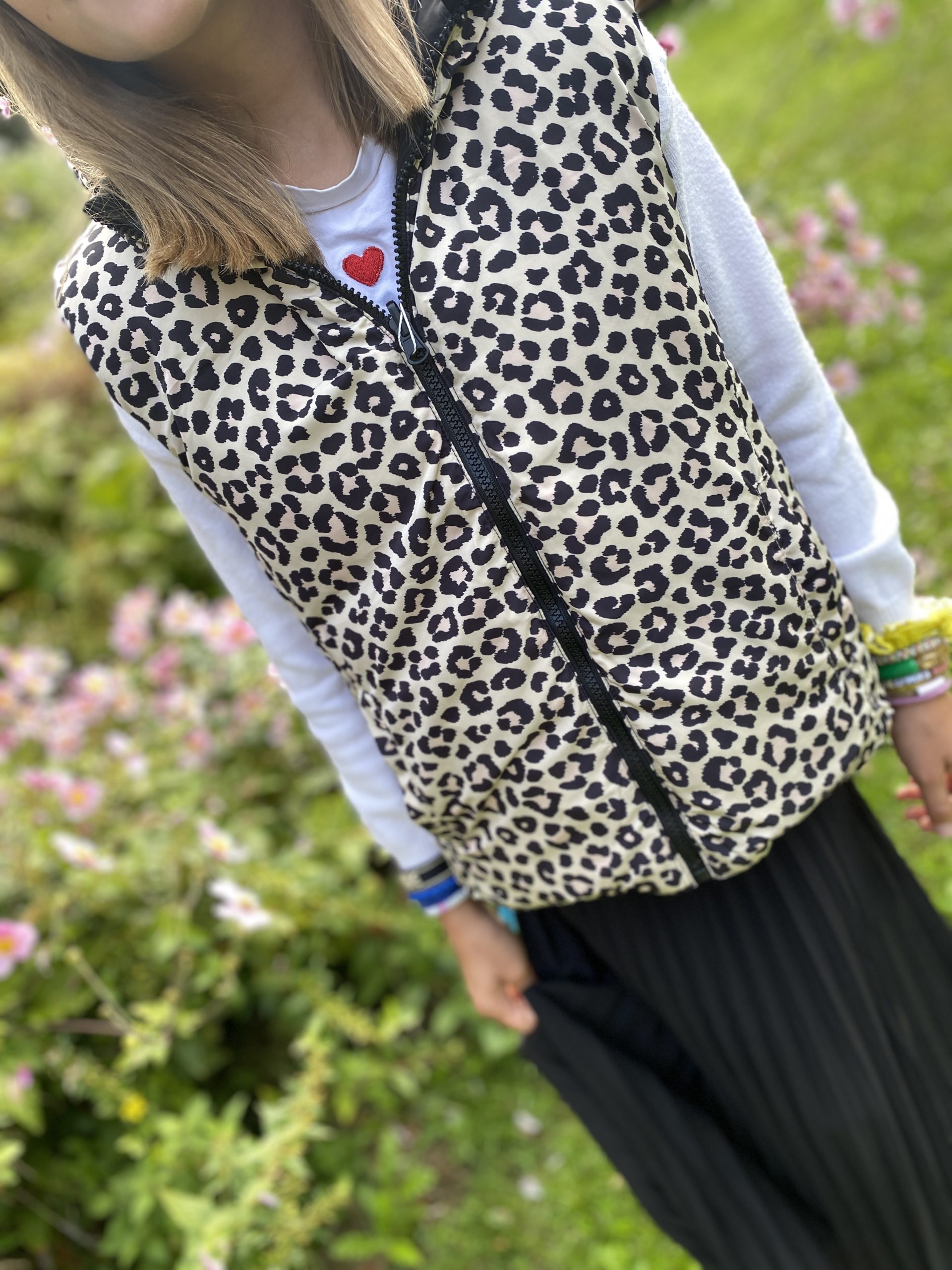Doudoune réversible sans manche léopard noir