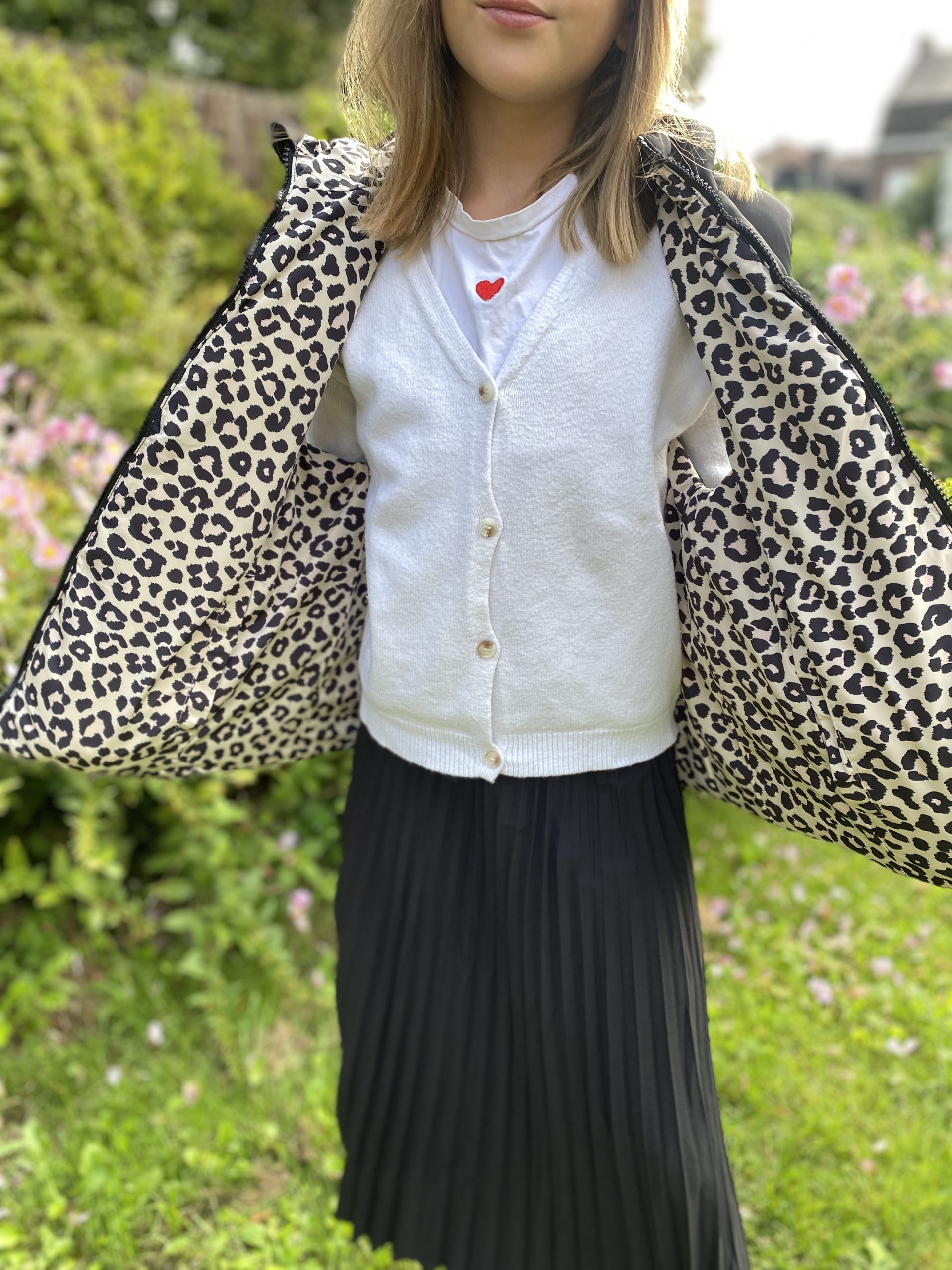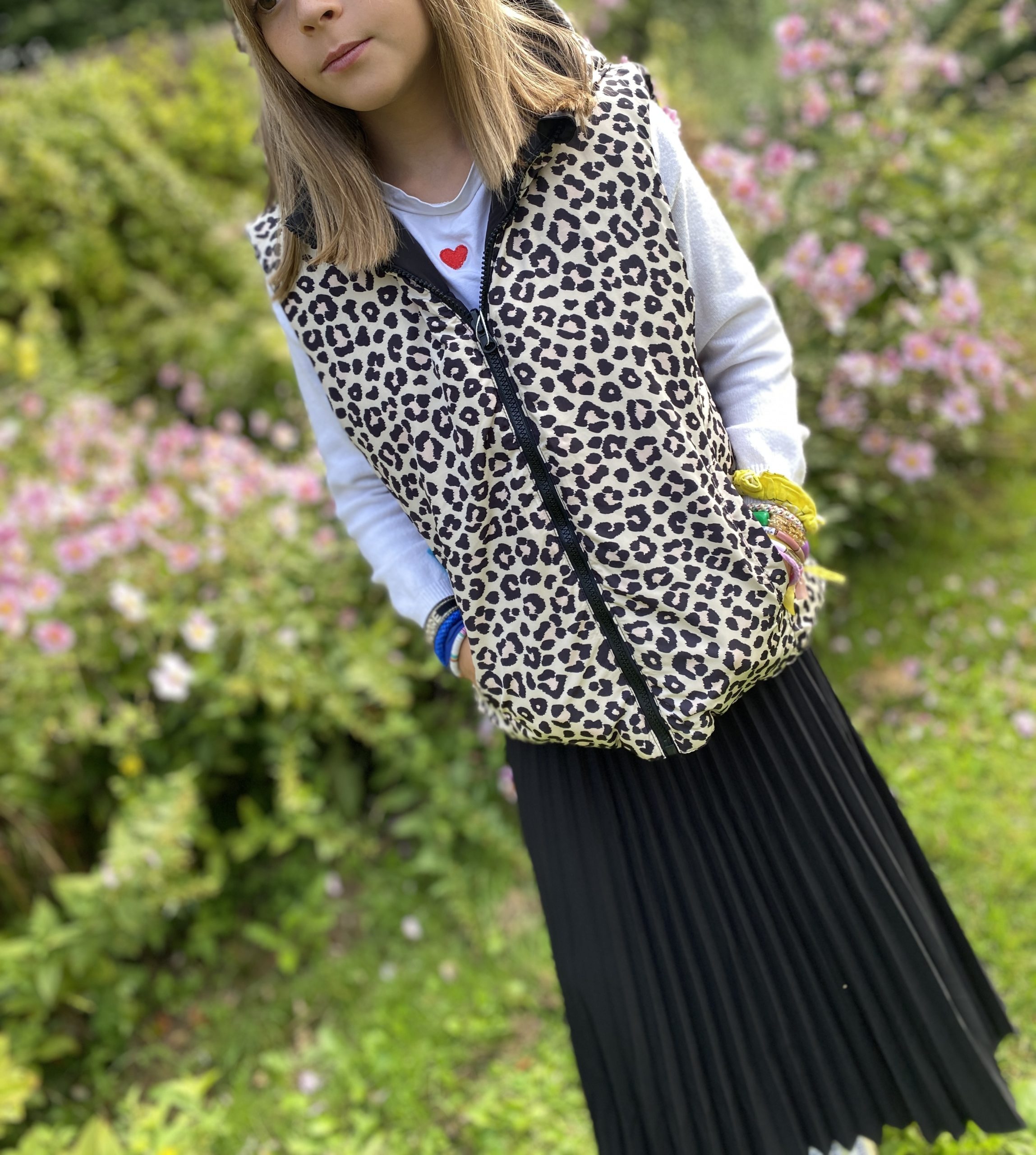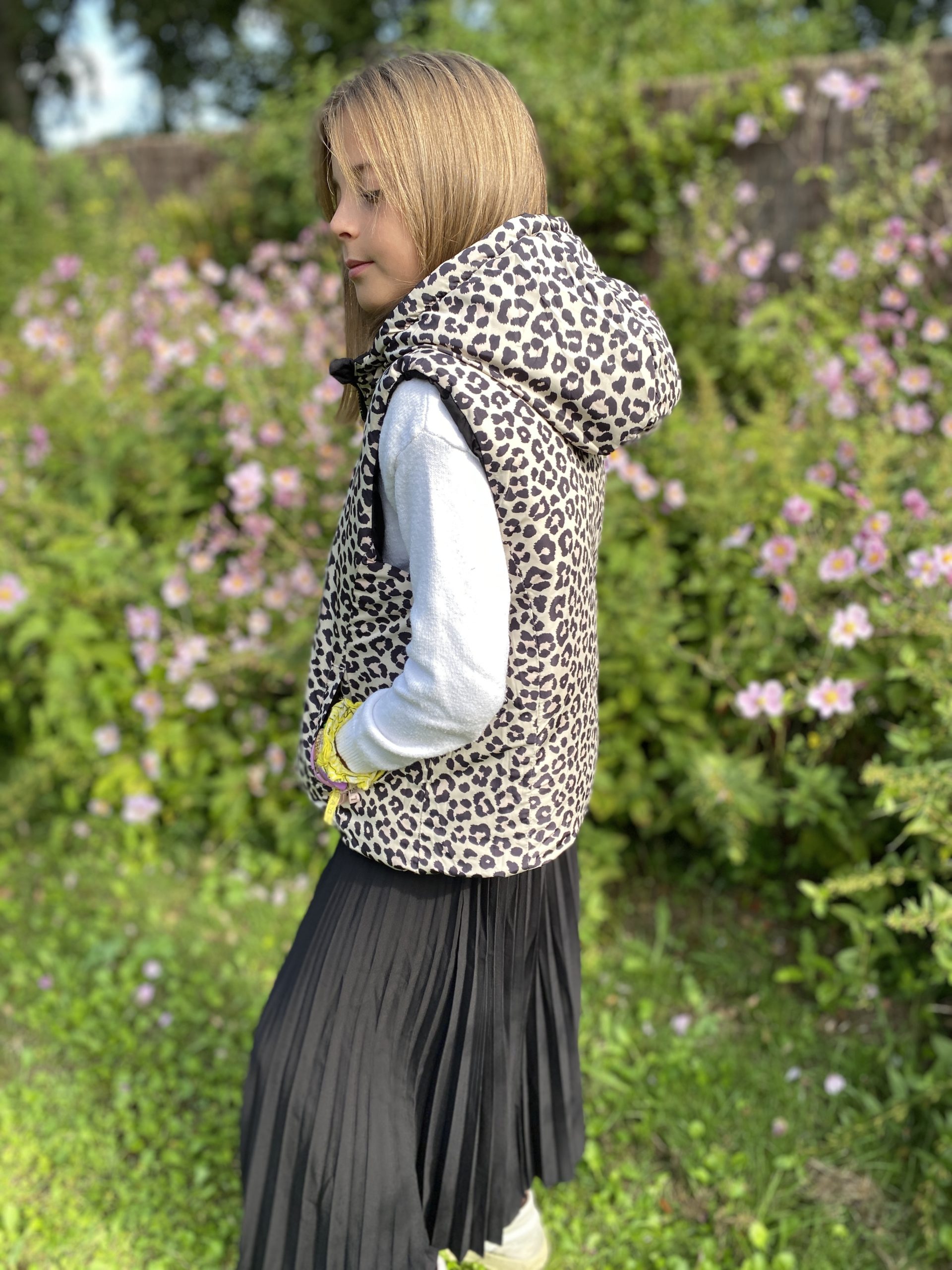Doudoune réversible sans manche léopard noir