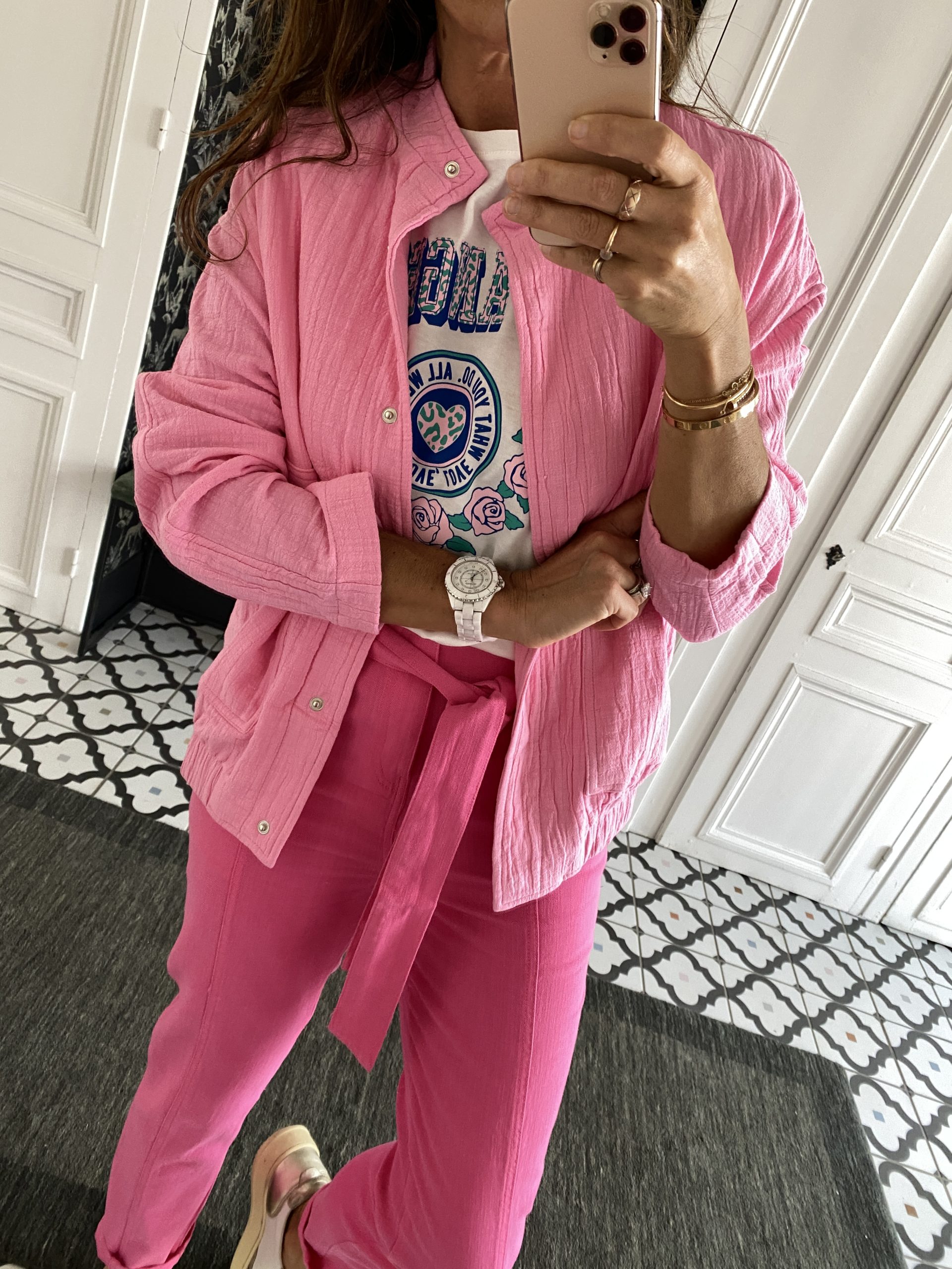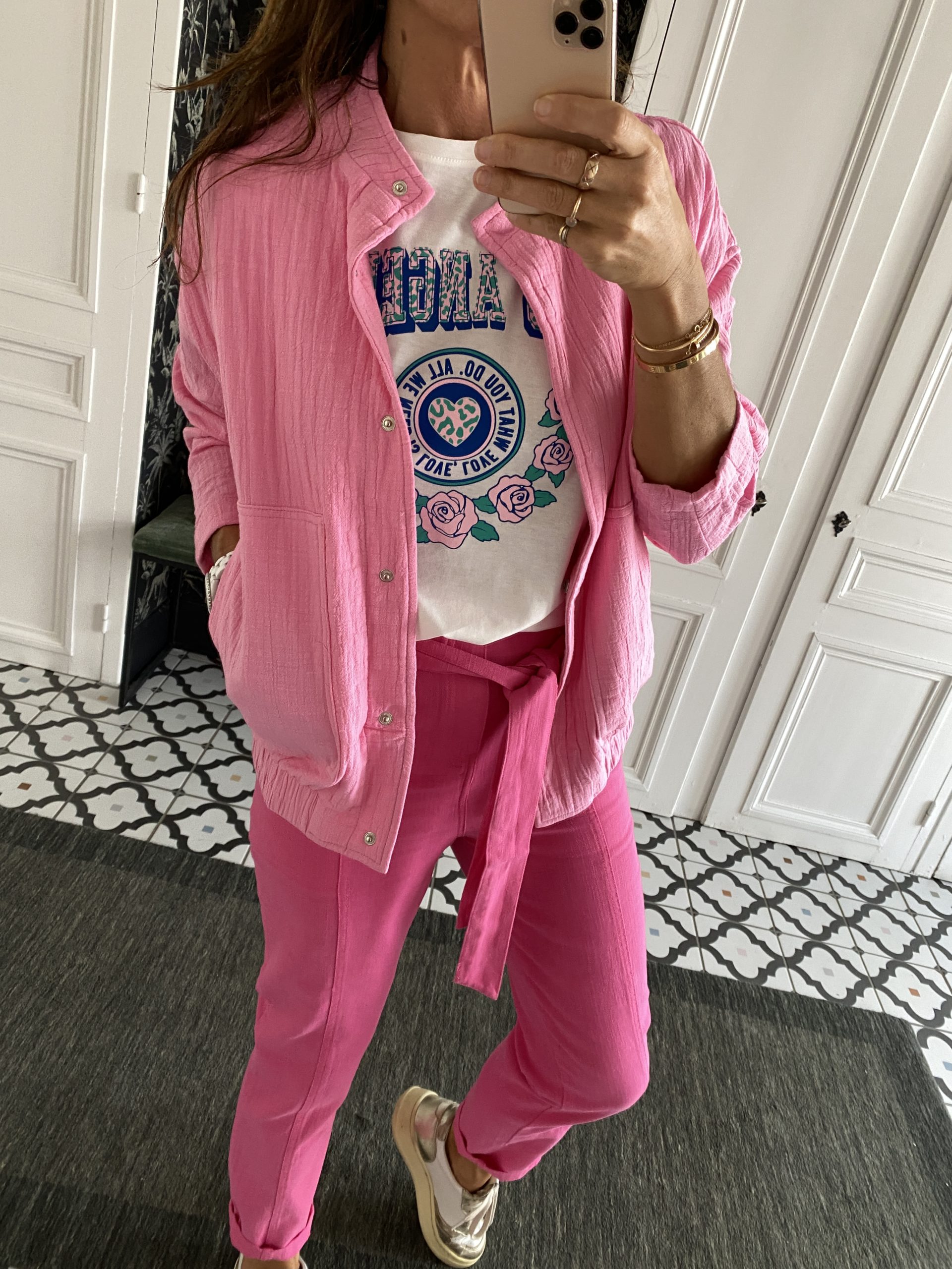 Veste coton forme blouson rose