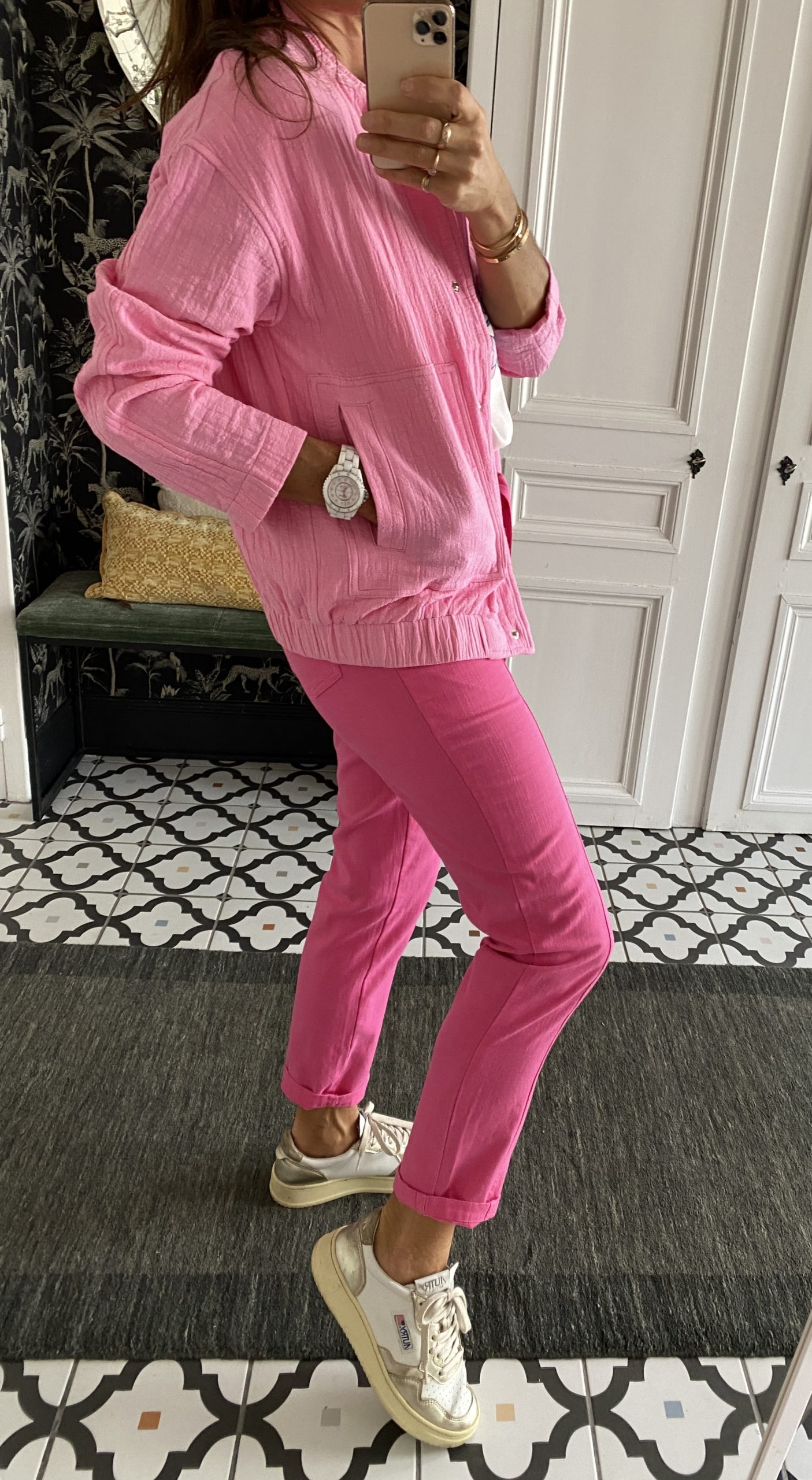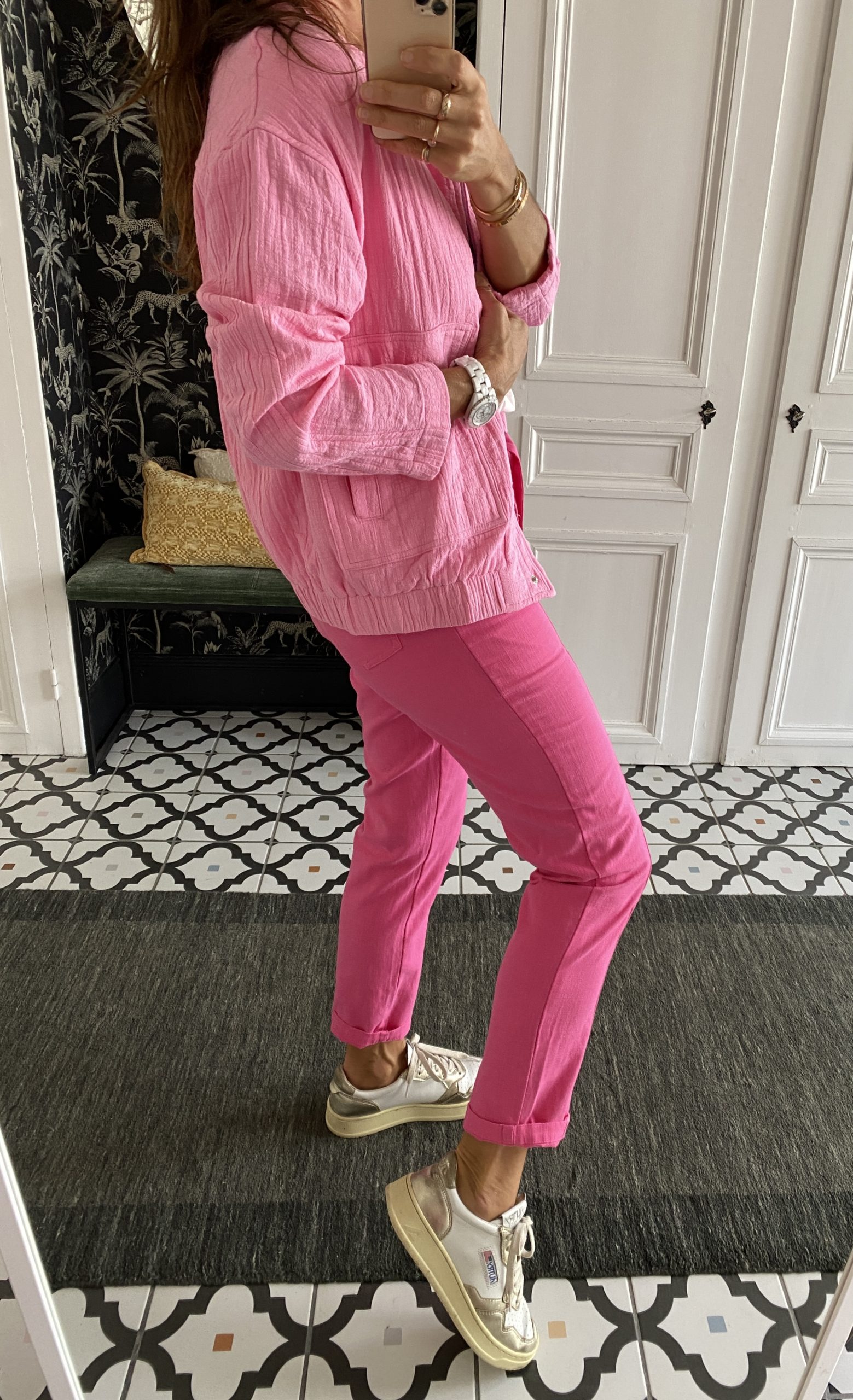 / Veste coton forme blouson rose