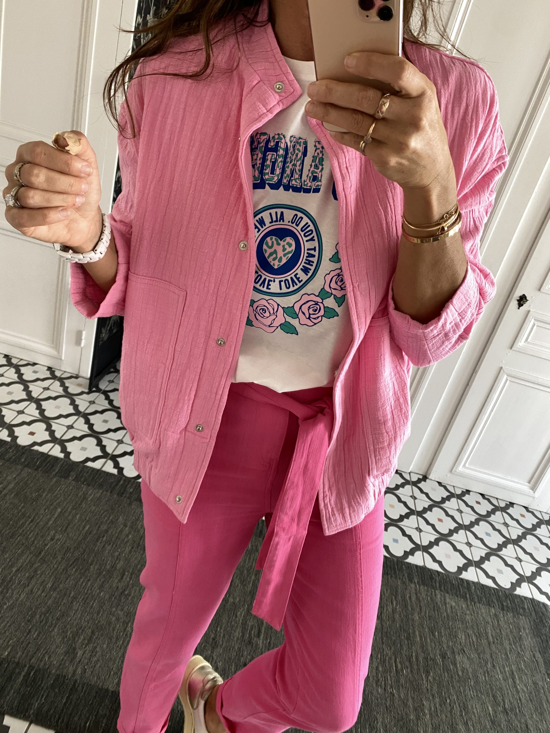 quantité de Veste coton forme blouson rose